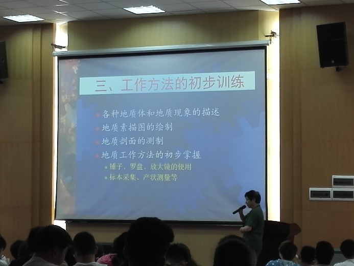 徐启东、甘华军两位老师为同学们介绍北戴河、周口店两个实习站的实习内容和具体要求。分别从实习意义、基本内容、地质工作方法训练、地质思维训练以及实习注意事项等方面向同学们进行详细讲解。