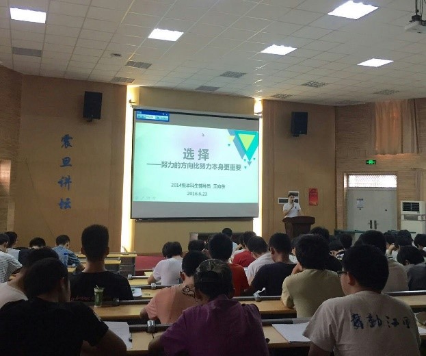 辅导员刘明辉、王向东从大学生涯规划的角度,对两个年级的同学提出了总结与展望。刘明辉以“分水岭”为主题,从大学的重要性、阶段性以及大二年级的主要任务等方面对年级同学提出了要求与希望。王向东则以“选择”为主题,提醒大家重视大三年级这一关键阶段,要警惕自由的陷阱,做好充分的准备,规划好自己的努力方向。