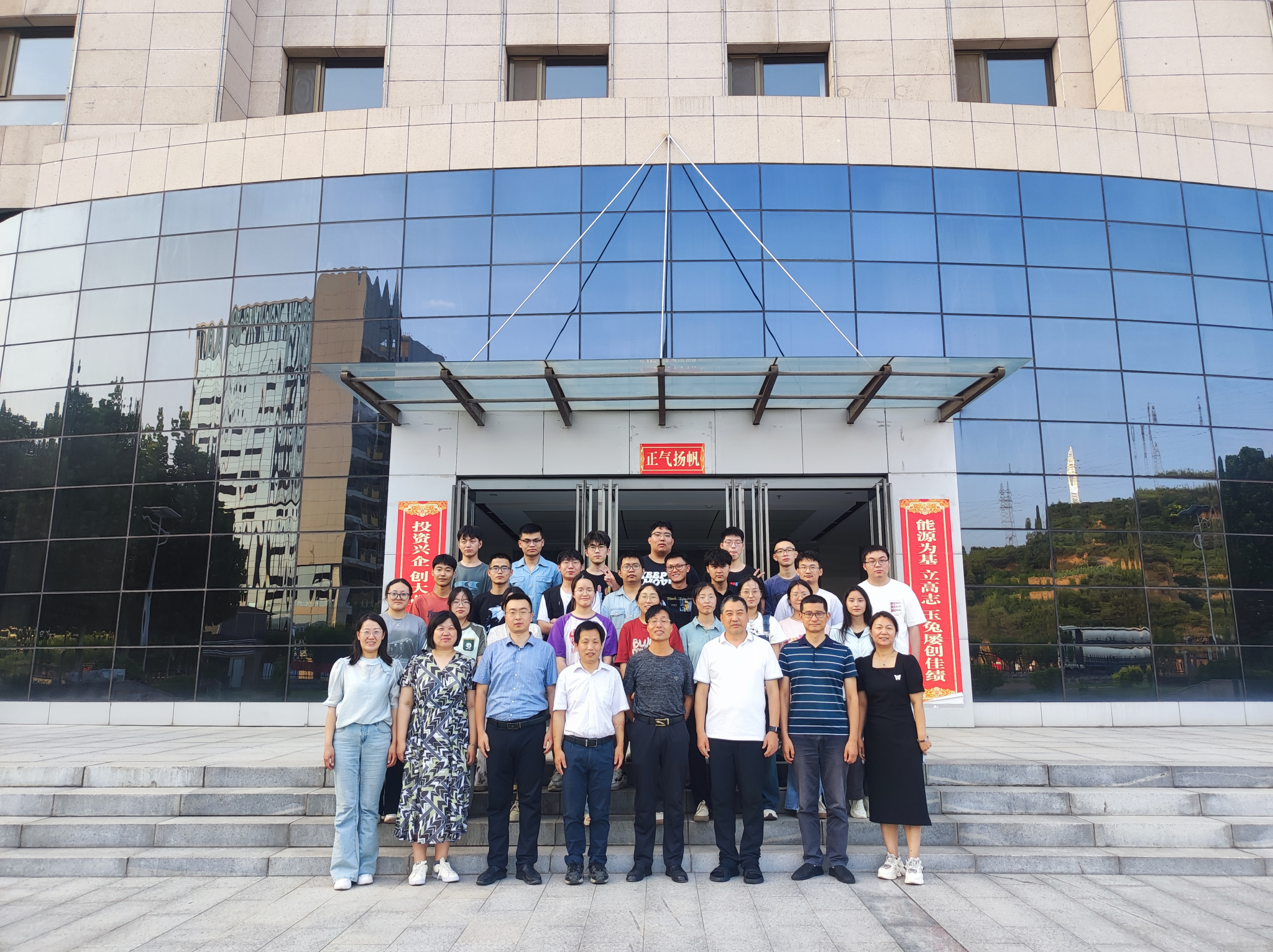 沁水县组织部、能投公司领导与全体实习师生合影留念