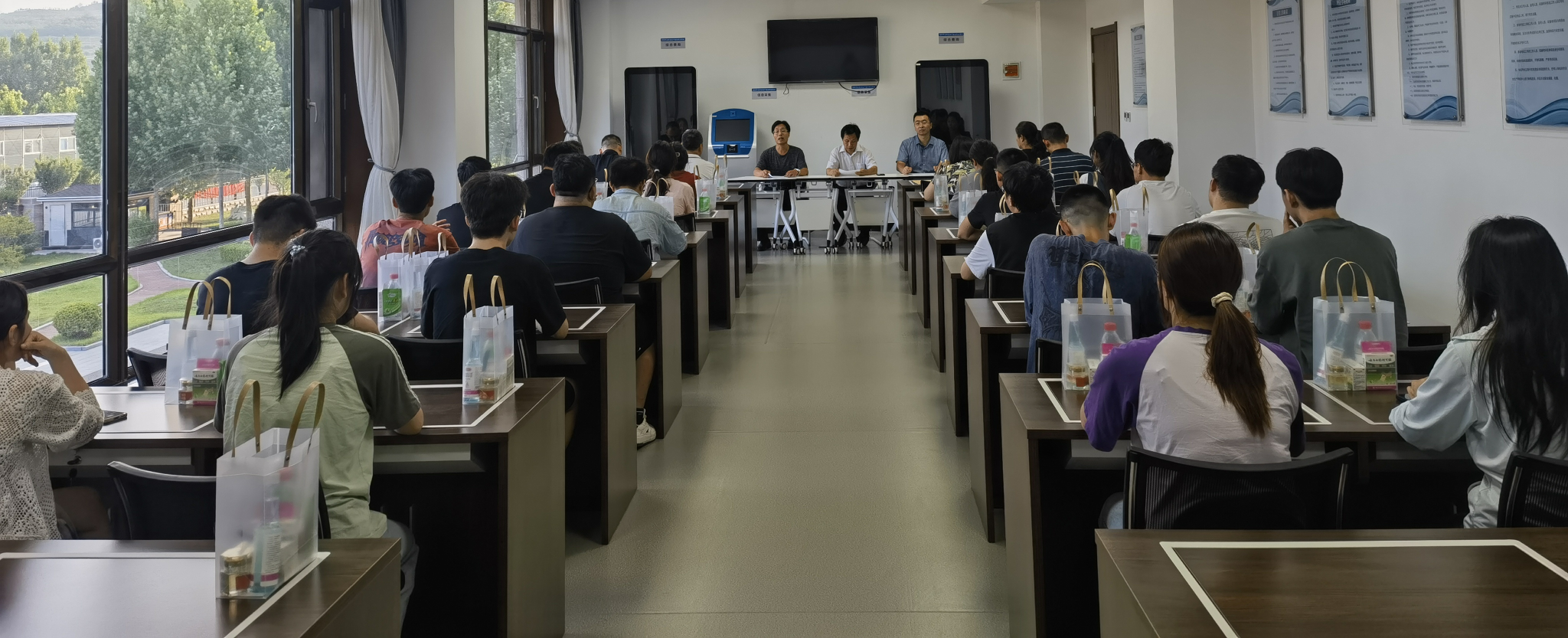能投公司常务副总经理张静为全体师生发放实习暖心包,他表示实习基地将全心全意为本次实习提供好保障条件。