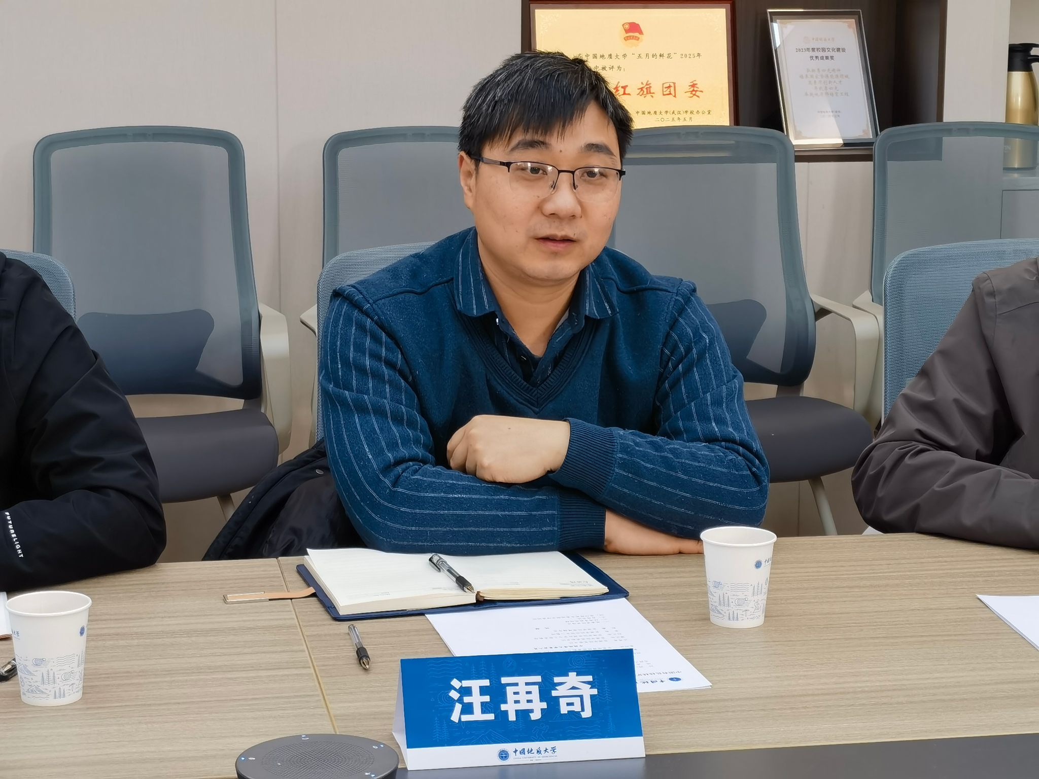 党委书记汪再奇、党委副书记谭文伦、资源科学与工程系教师刘文浩、实验中心教师李前、辅导员彭鑫参加座谈。汪再奇主持会议。