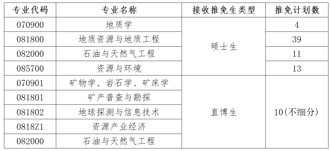 二、接收推免生学科专业及计划