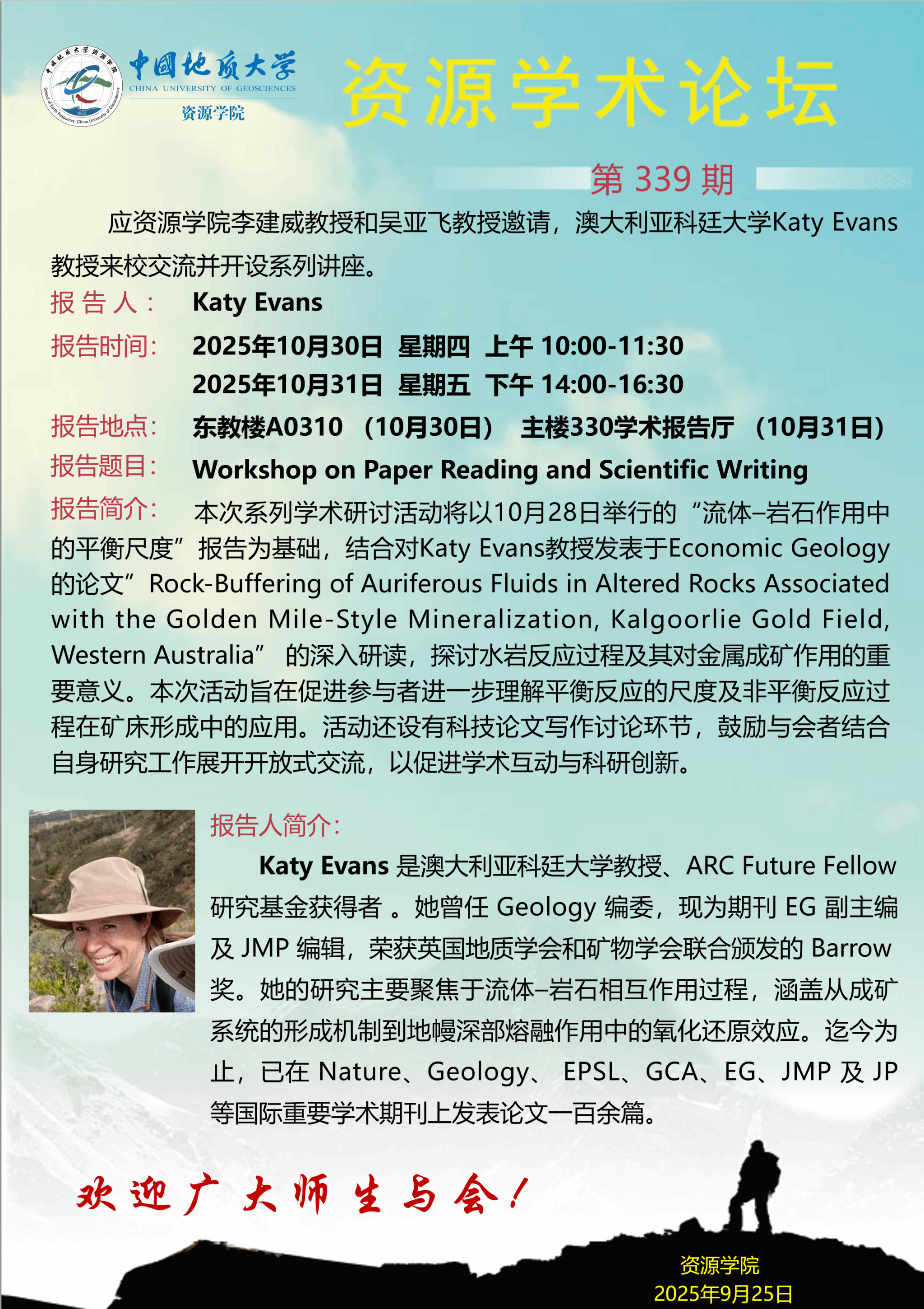 【10月30日-10月31日】第339期资源学术论坛:Katy Evans学术报告