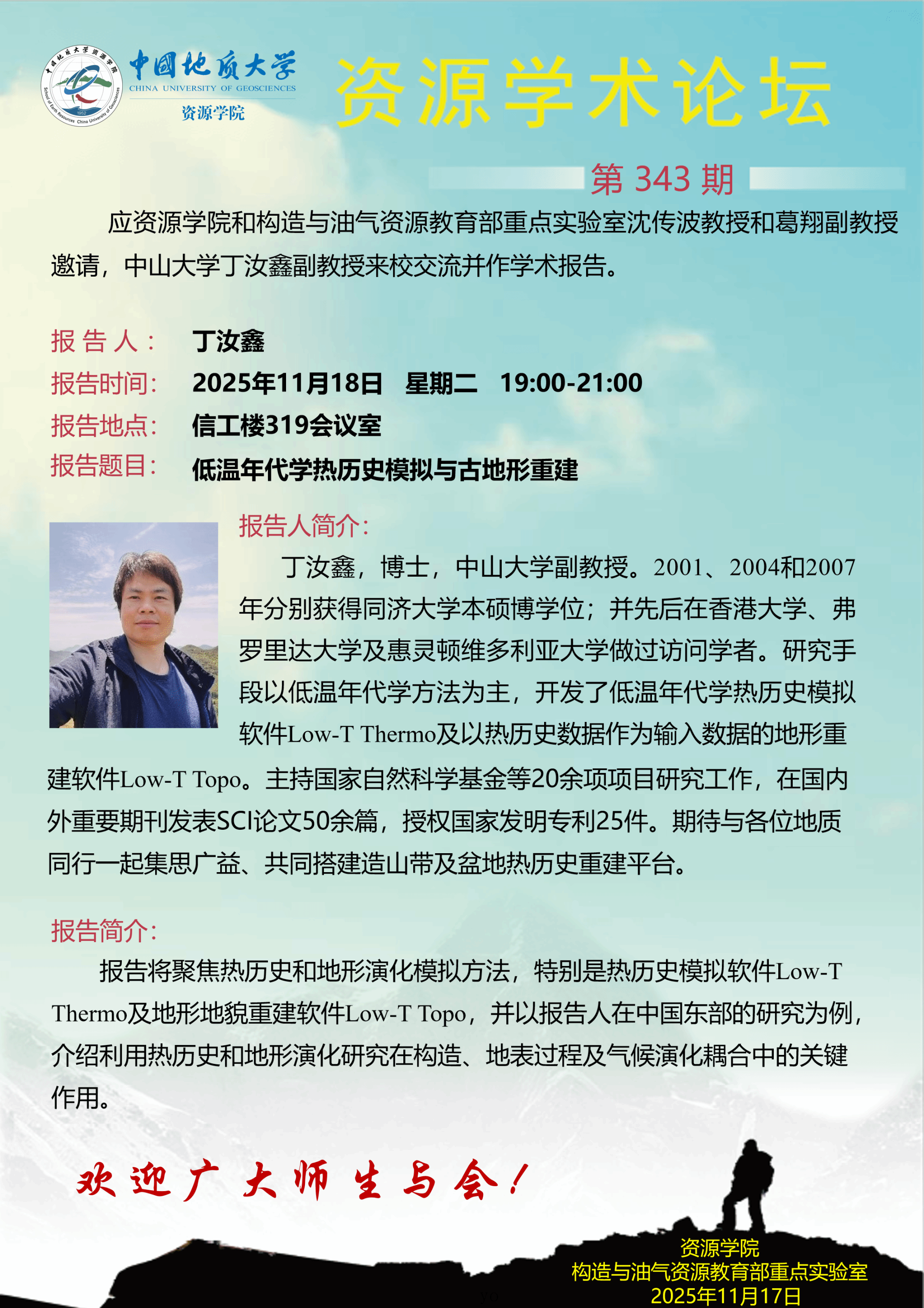 【11月18日】第343期资源学术论坛:丁汝鑫学术报告