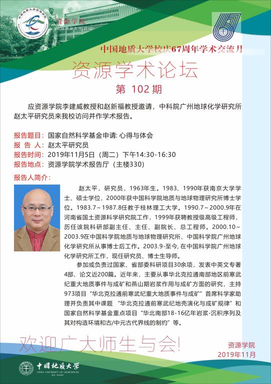 【11月5日】第102期资源学术论坛:赵太平学术报告