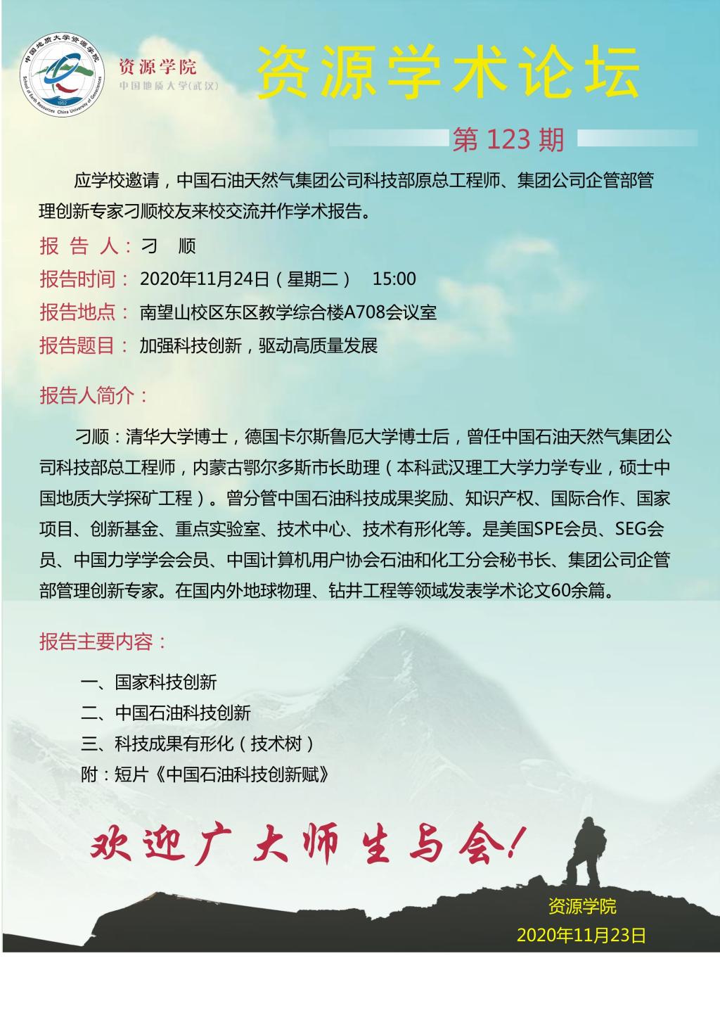 【11月24日】第123期资源学术论坛:刁顺学术报告
