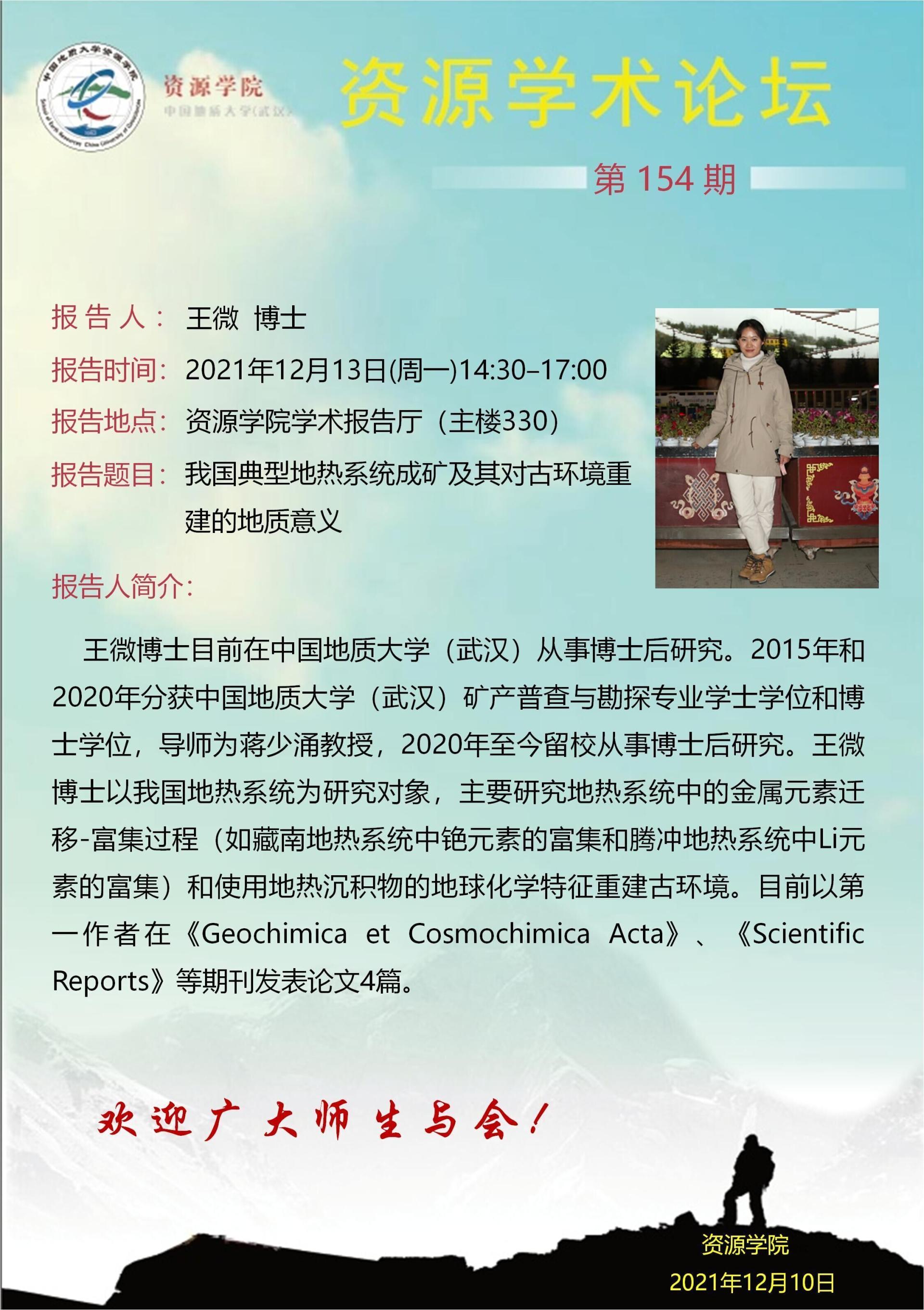 【12月13日】第154期资源学术论坛:王微学术报告