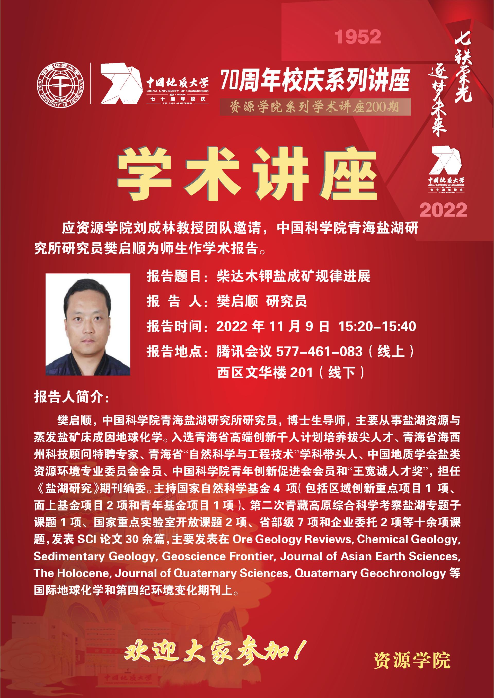 【11月9日】第200期资源学术论坛:樊启顺学术报告