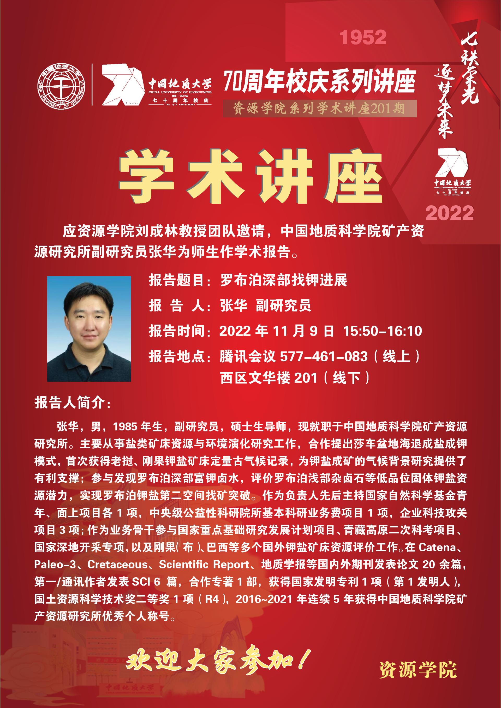 【11月9日】第201期资源学术论坛:张华学术报告