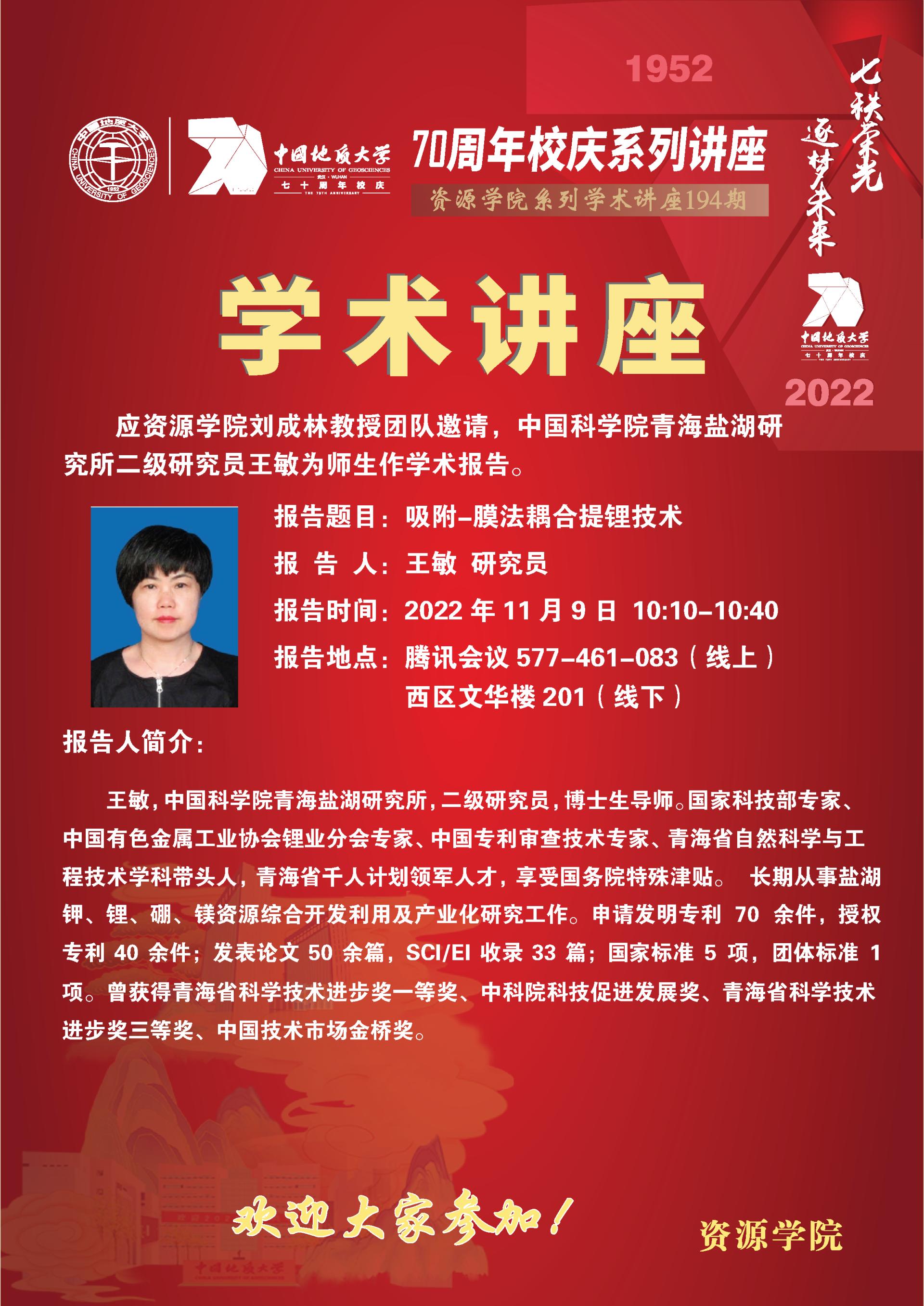 【11月9日】第194期资源学术论坛:王敏学术报告
