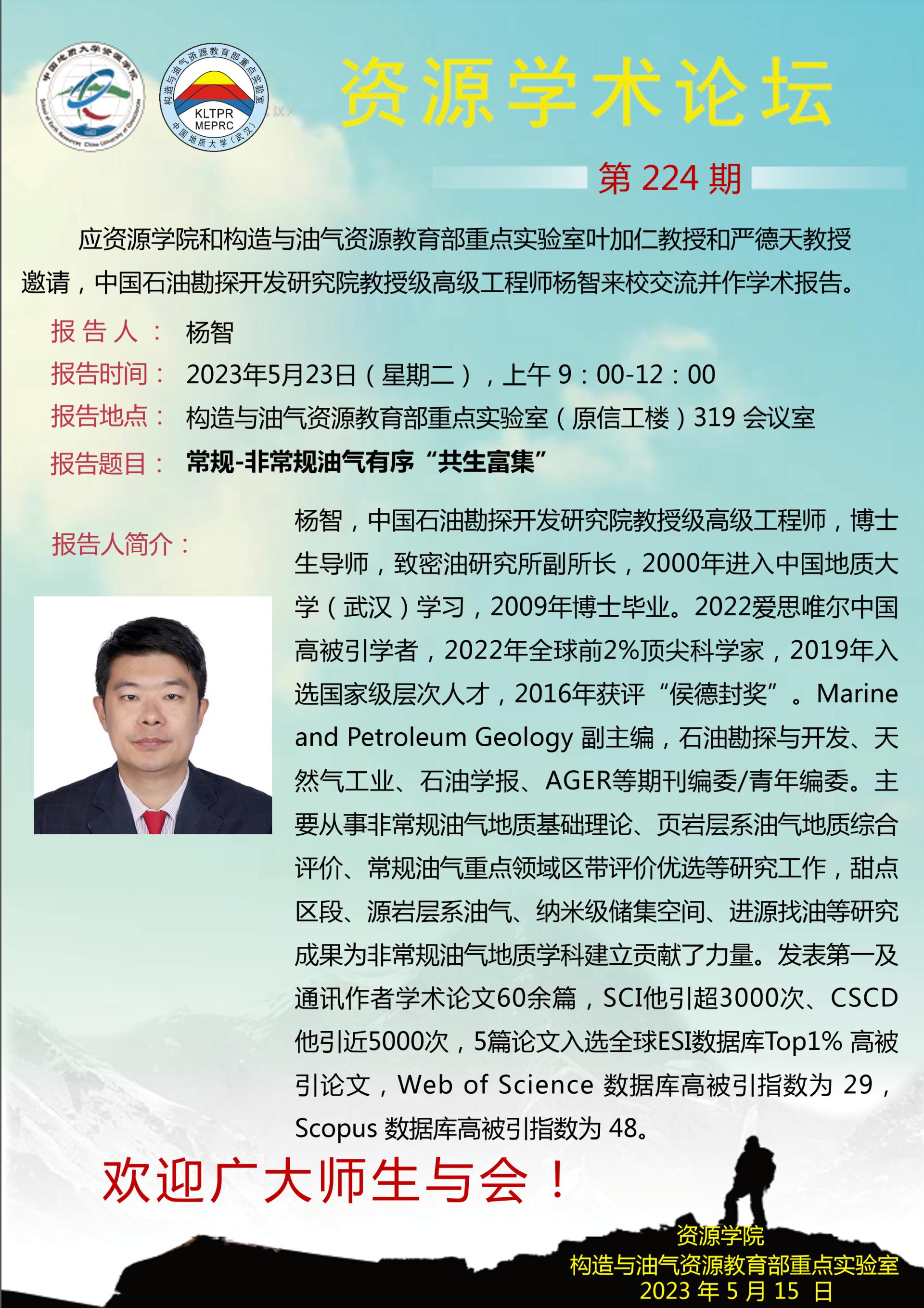 【5月23日】第224期资源学术论坛:杨智学术报告