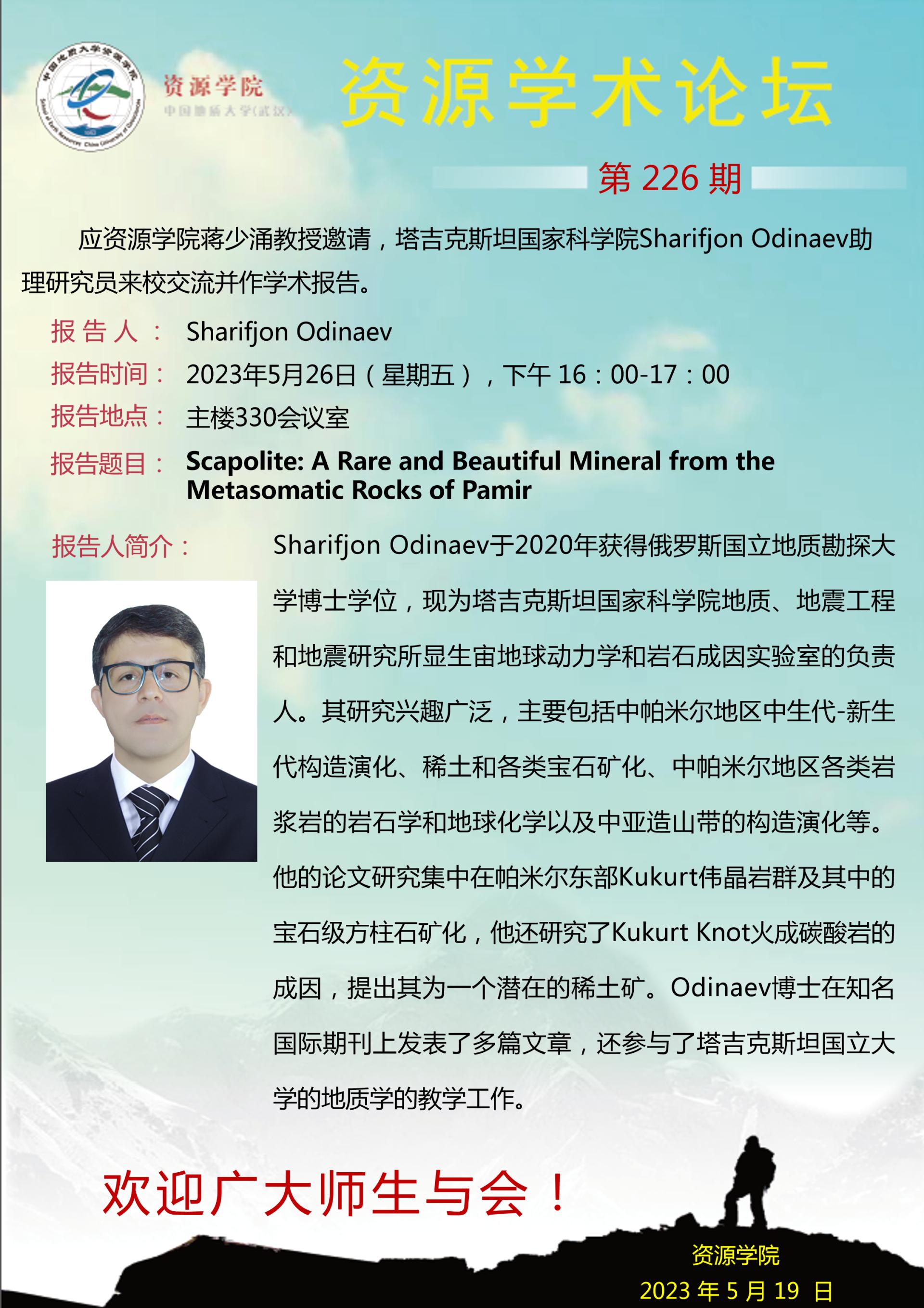 【5月26日】第226期资源学术论坛:Sharifjon Odinaev学术报告