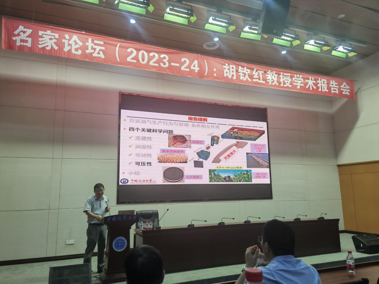 严德天院长和杨锐教授邀请,中国石油大学(华东)讲席教授胡钦红在学校东区综合楼A0116作了题为“能源独立和碳中和之路:(纳米)岩石物理研究的参与”的学术报告。