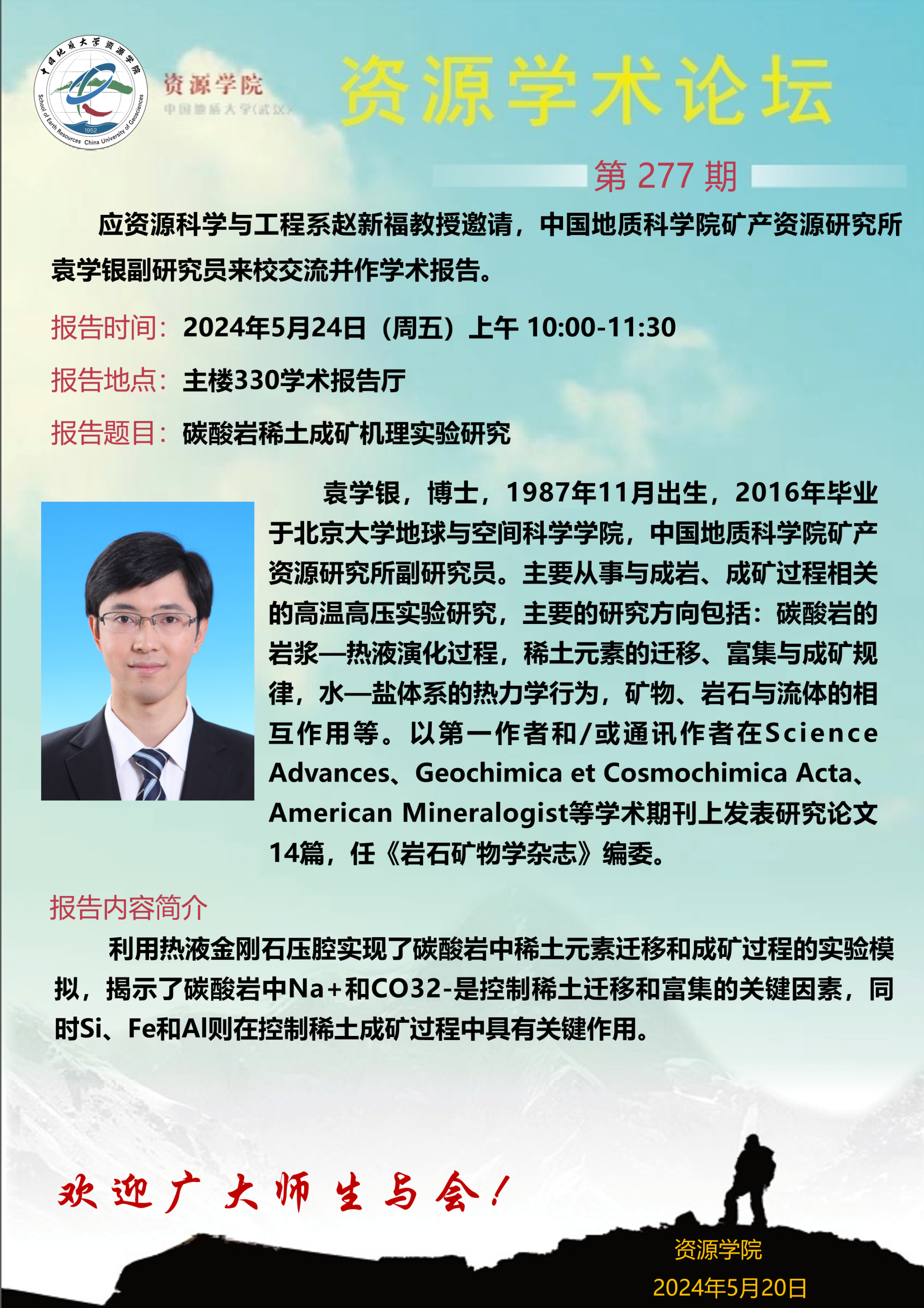 【5月24日】第277期资源学术论坛:袁学银学术报告