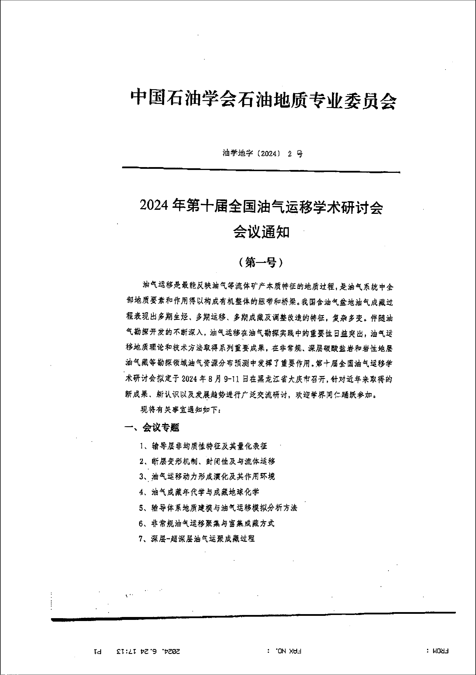 2024年第十届全国油气运移学术研讨会会议通知