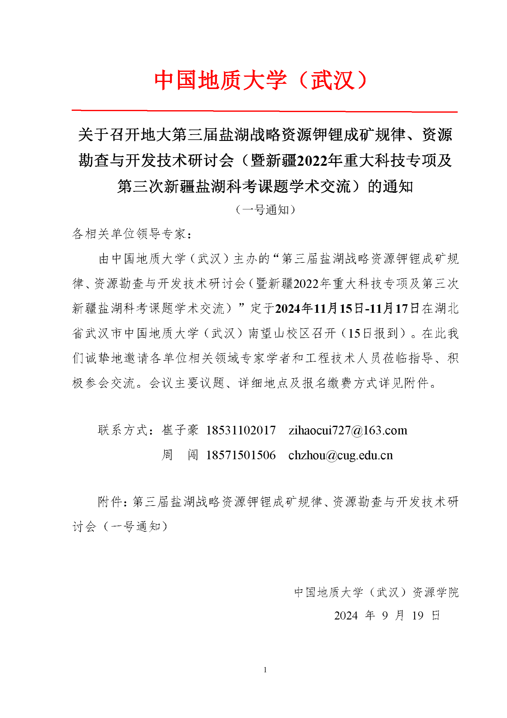 关于召开地大第三届盐湖战略资源钾锂成矿规律、资源勘查与开发技术研讨会(暨新疆2022年重大科技专项及第三次新疆盐湖科考课题学术交流)的通知