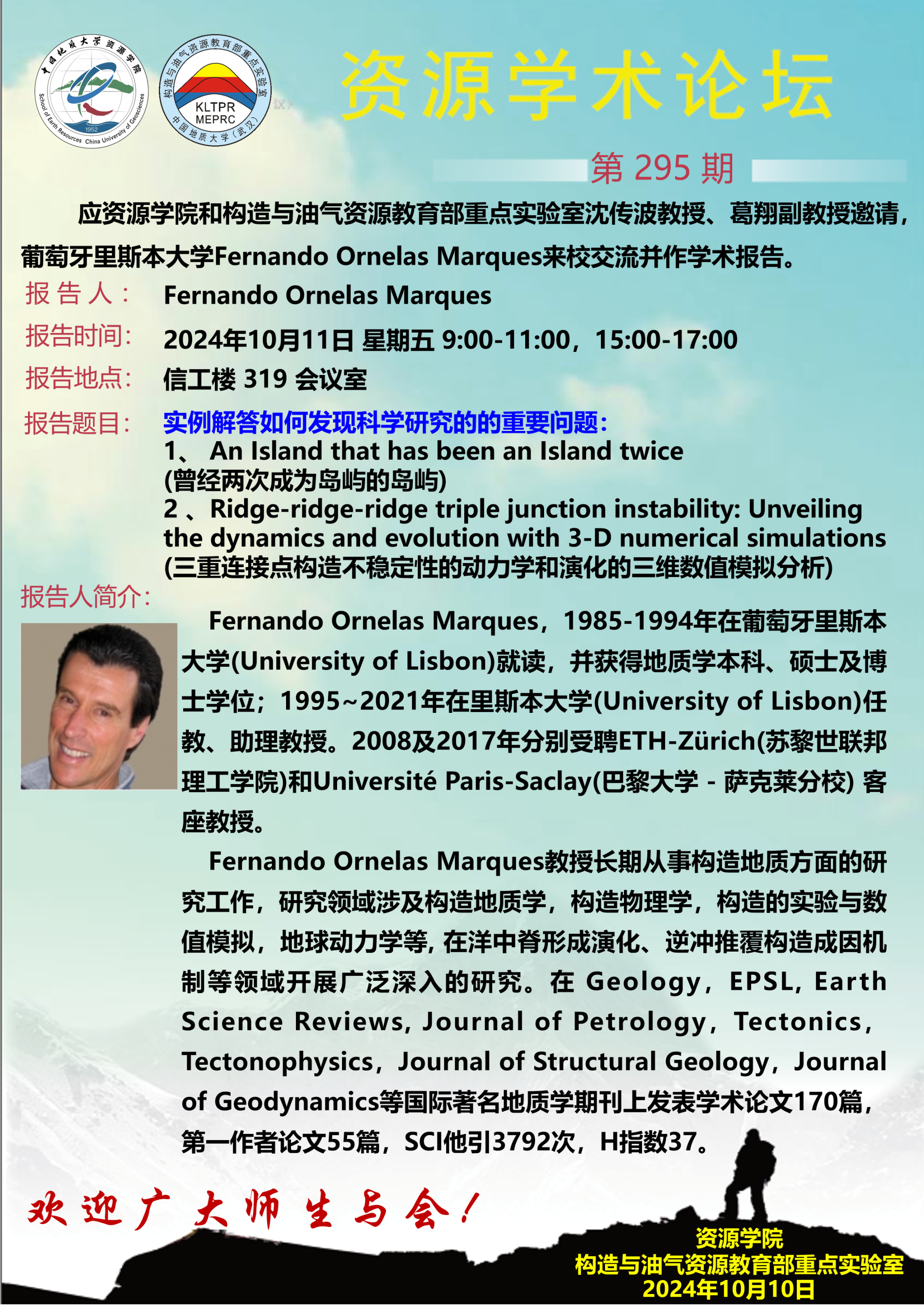 【10月11日】第295期资源学术论坛:Fernando Ornelas Marques学术报告