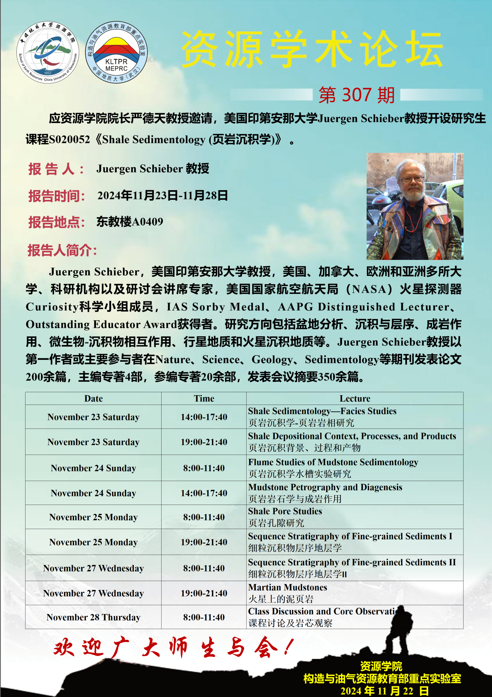 【11月23日-11月28日】第307期资源学术论坛:Juergen Schieber学术报告