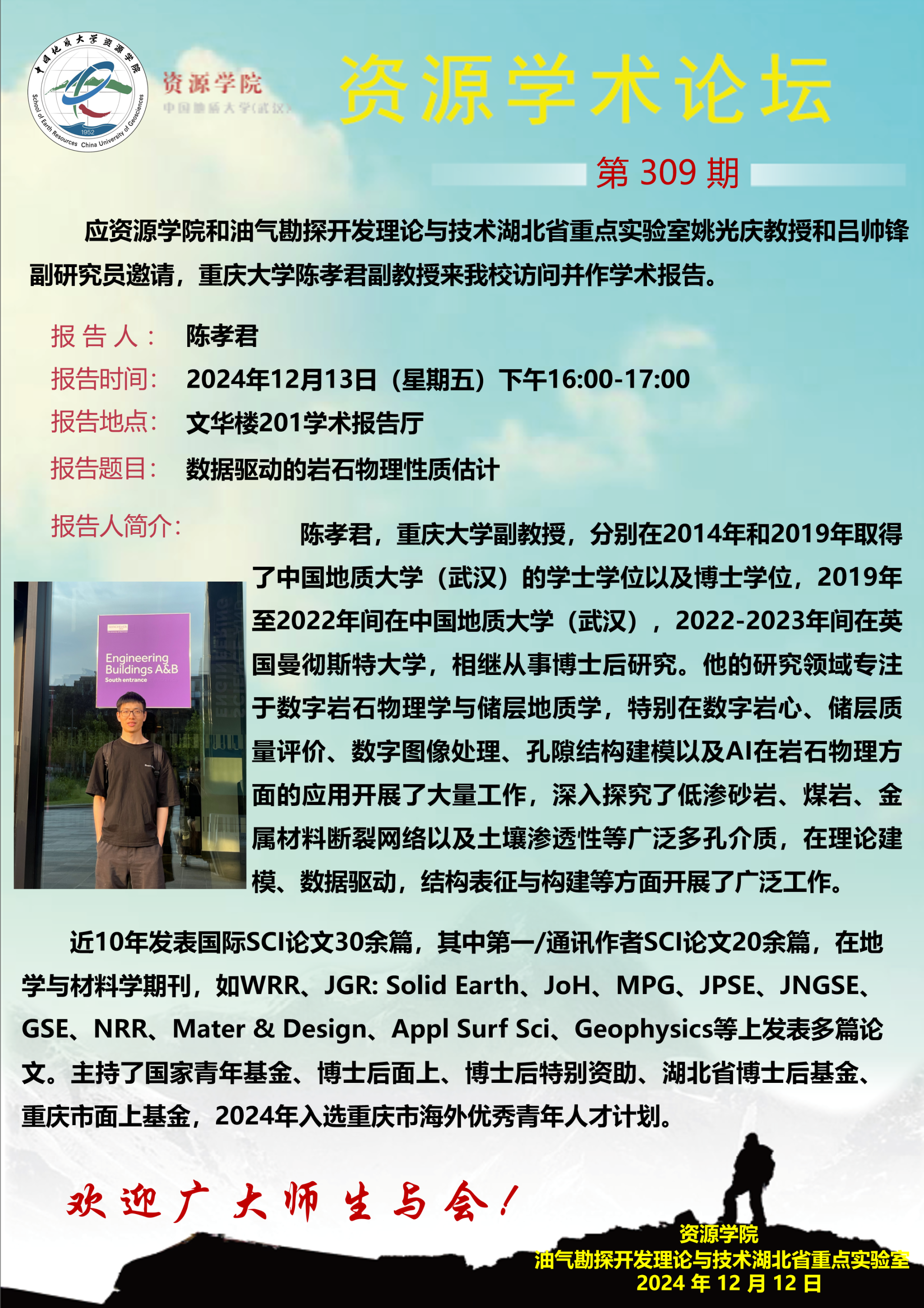 【12月13日】第309期资源学术论坛:陈孝君学术报告