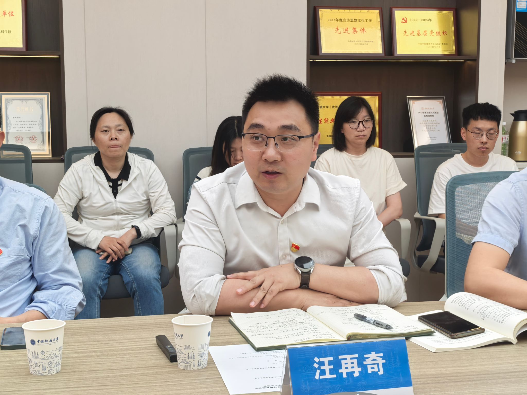 党委书记汪再奇,党委副书记、纪委书记谭文伦,资源科学与工程系党支部成员,院直党支部成员参加会议。谭文伦主持会议。