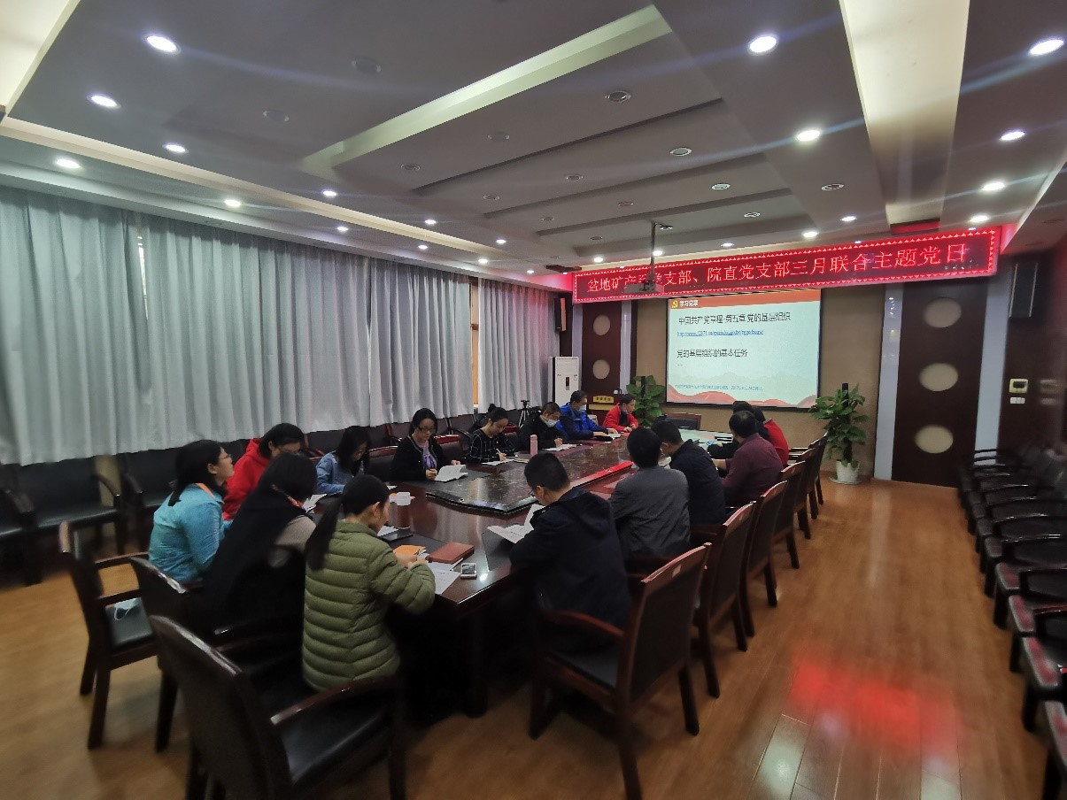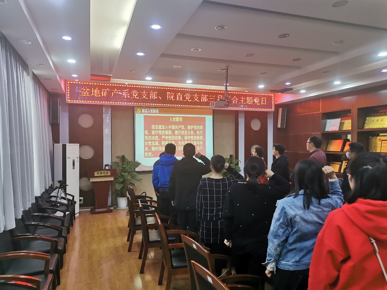 盆地矿产系党支部与院直党支部开展联合“党史学习教育”主题党日学习活动。支部全体在校党员参加学习,盆地矿产系党支部书记王小明主持学习活动。