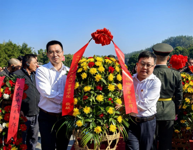 参观学习后,学院党委书记高复阳、院长严德天带领全体成员向毛泽东同志铜像敬献花篮。