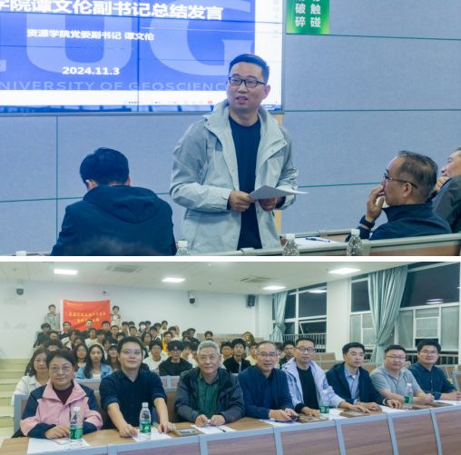 谭文伦对本次活动进行总结。他指出,学院为2024级本科生班级配备了教师双班主任、助理班主任和党员责任区负责人,体现了对石油工程专业本科人才培养的重视。他结合自身在中石油、中石化和中海油等油田公司的调研经历,生动地描述了行业生产方式的变化和广阔的就业前景,希望同学们增强专业自信、锤炼扎实本领,为祖国资源能源事业贡献力量。