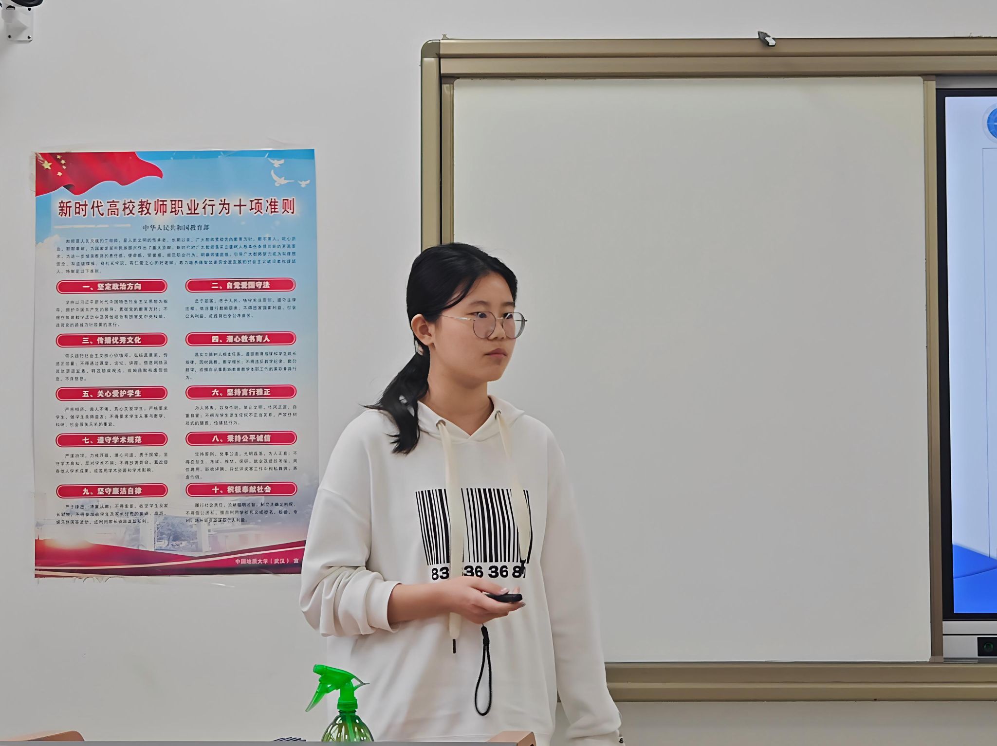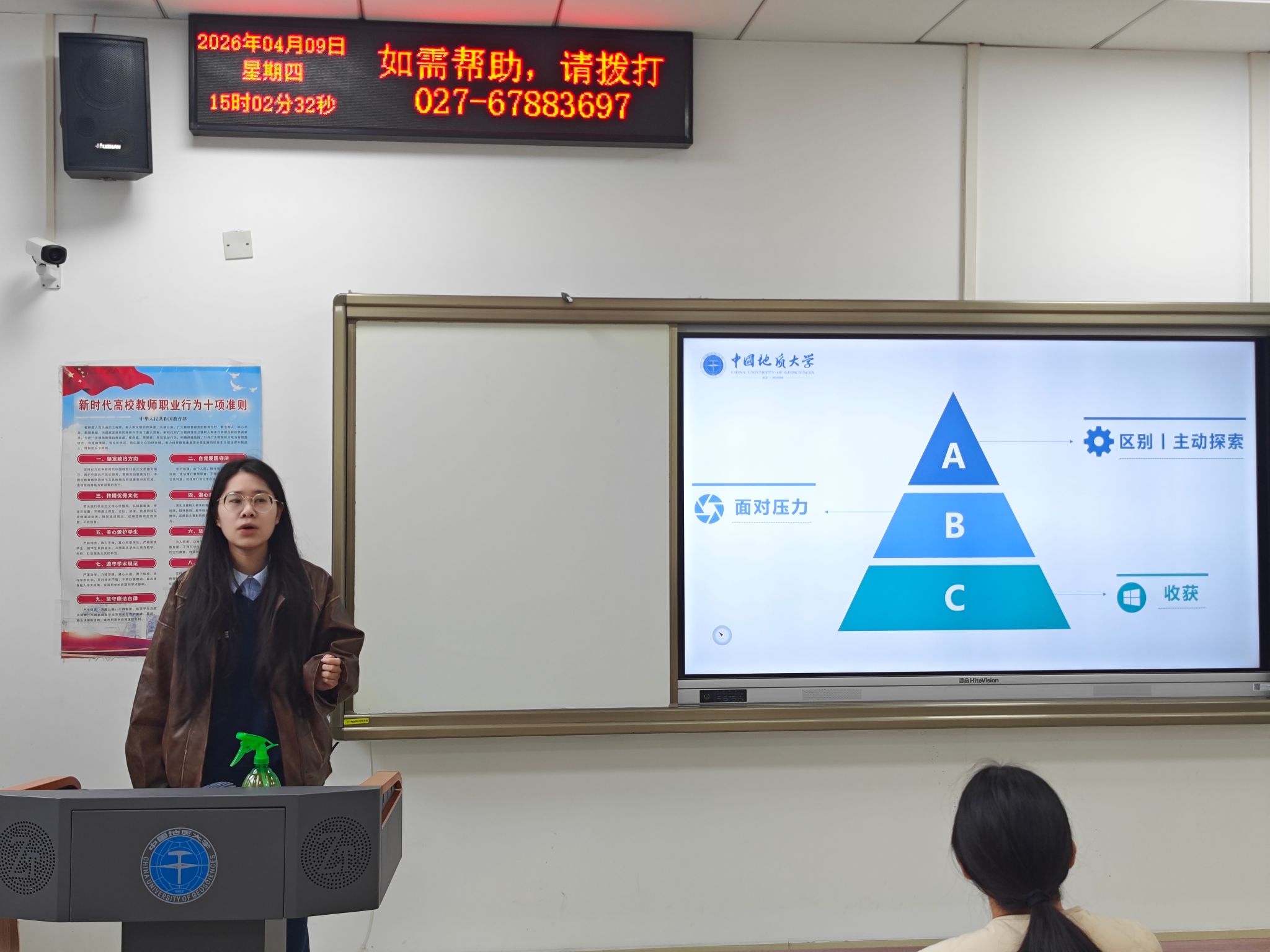 研究生代表钟莉结合读研期间的学习体会,重点分享了研究生阶段“主动请教”的重要性。她认为,与本科阶段被动接受知识不同,研究生需主动向导师和师兄师姐请教问题、寻求反馈,才能快速找到研究方向突破口,同时她建议养成规律作息,保证每日固定学习时间,为学术研究打好基础。