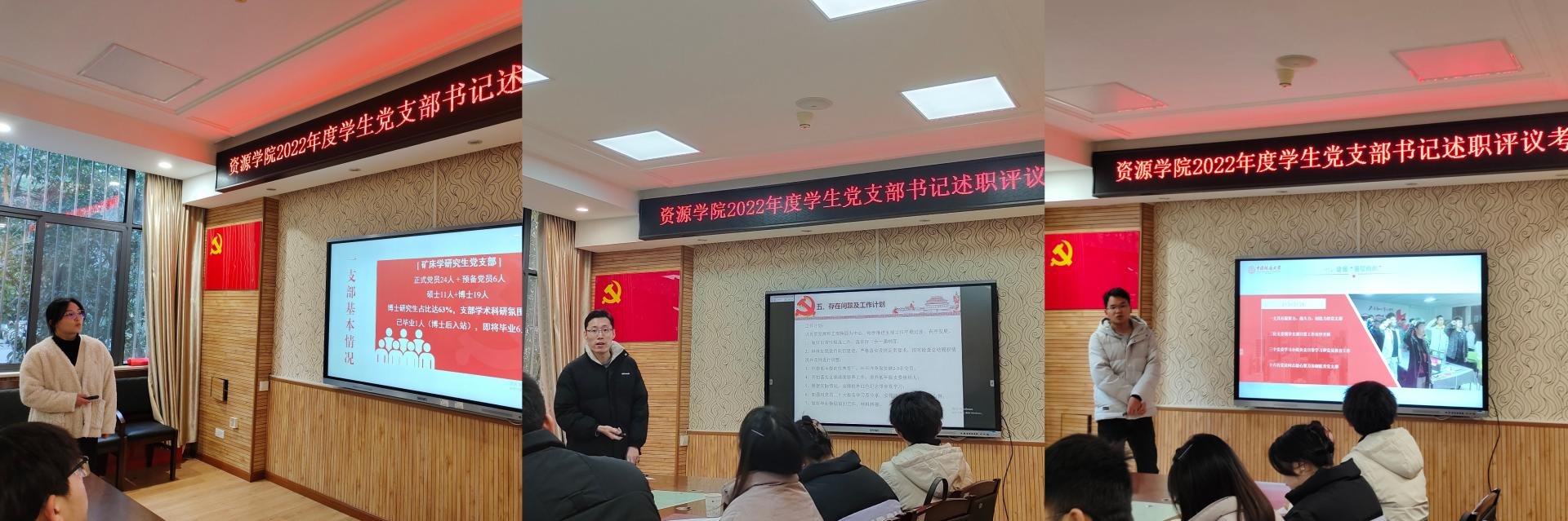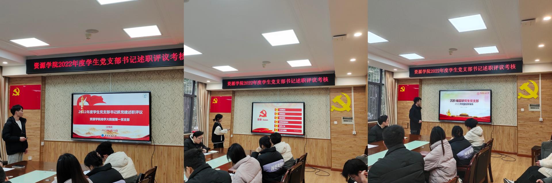 20个学生党支部对照《关于做好2022年度党组织书记抓基层党建述职评议考核工作的通知》,聚焦学习贯彻党的二十大精神和习近平总书记重要回信精神、样板支部培育创建、“党员责任区”设岗创建整体履职、党员发展工作总结和本年度工作计划、存在问题和后续工作计划等内容进行述职。评议组对各支部现场提问、一一点评,参会人员集体交流并讨论学生党建工作。