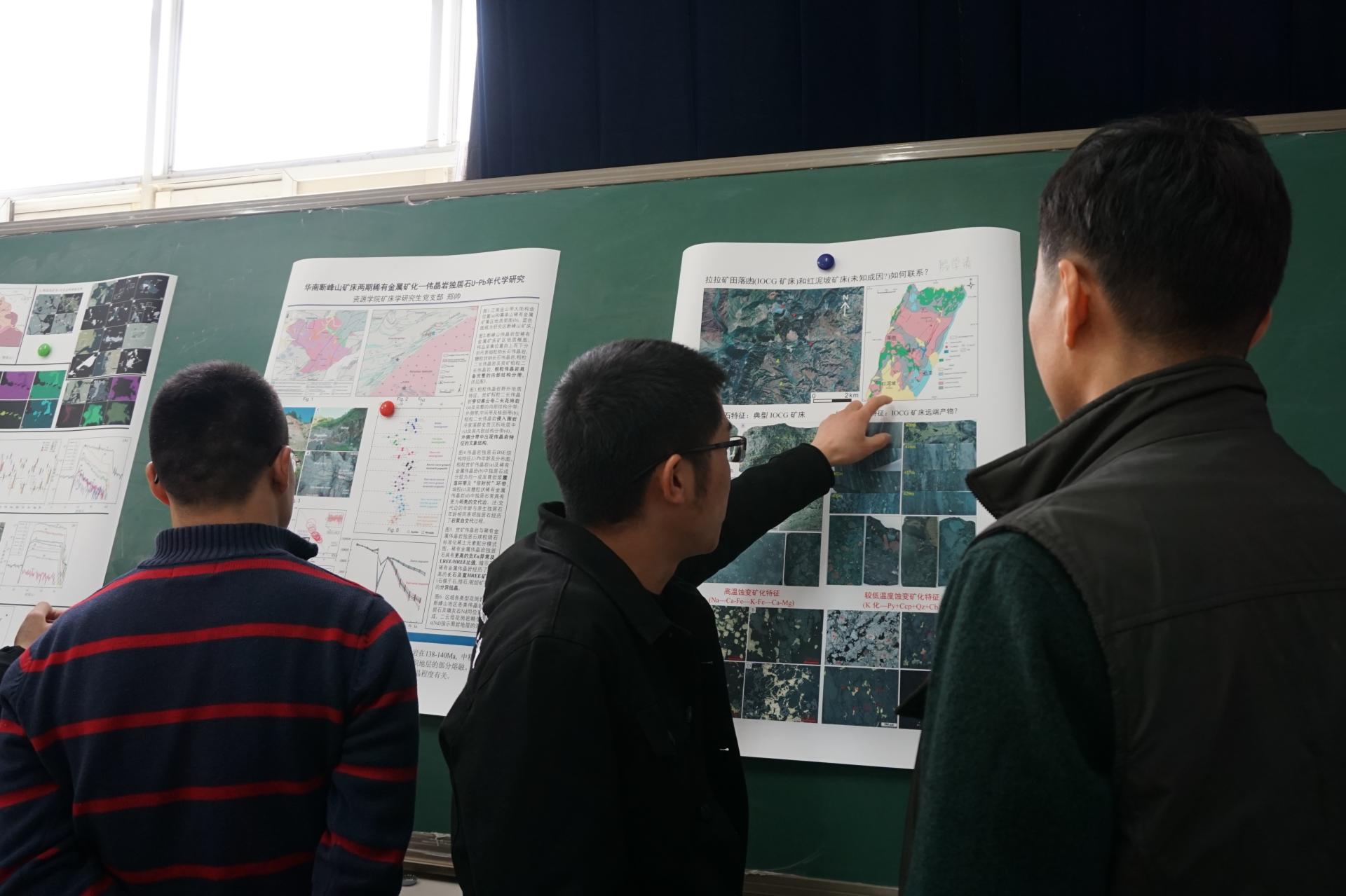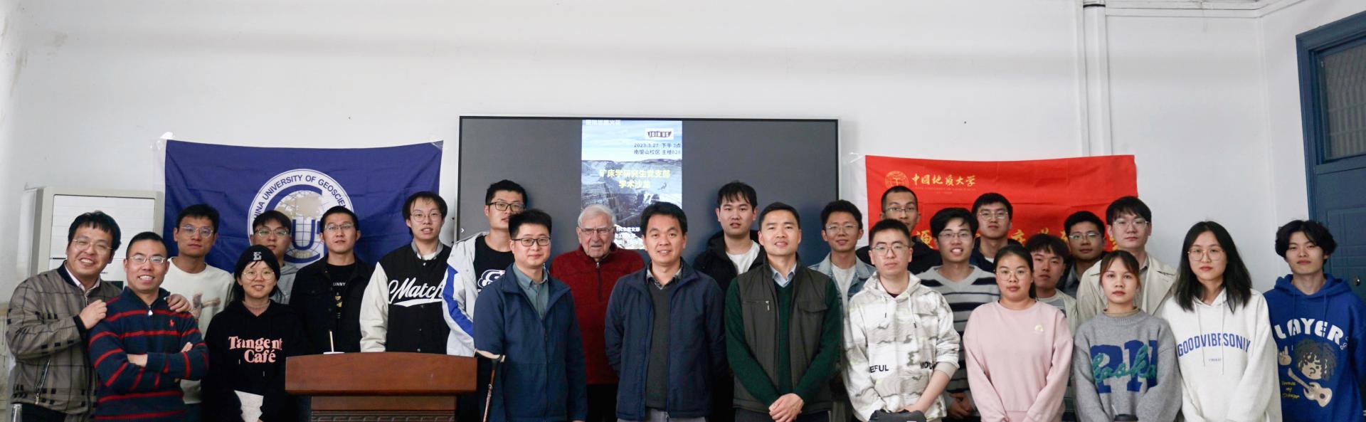 (武汉)SEG学生分会,在主楼826教室举办“增进学术交流,碰撞思维火花”学术沙龙活动。活动以学术海报展示与交流为主要形式,支部党建指导员吴亚飞教授邀请了加拿大著名地质学家Paul Robinson教授,资源科学与工程系赵新福教授、党支部书记付乐兵副教授以及张鹏飞教授、姚卓森教授、李占轲副教授等参加了本次学术沙龙活动,与参会的研究生同学进行了深入的学术交流。