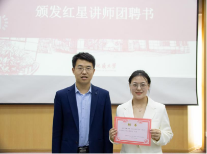 霍少孟为徐华欣颁发“红星讲师团”聘书。他讲述了与徐华欣认识的过程,以及从她身上感受到的自律、冲劲、韧劲。他向同学们分享了学习习近平总书记考察中国人民大学、在庆祝中国共产主义青年团成立100周年大会上的重要讲话精神感悟,以及参加五四青年座谈会、与长庆油田第六采油厂联合主题团日聆听青年代表发言的感受,向同学们分享了“自信”“勤奋”“阅读(历)”成长关键词。他希望资源学子们努力成长为“心中有光”“手中有书”“脚下有泥”的奋斗者、攀登者,一路追随光亮,保持活力,向更高的山、更远的路进发,砥砺青春、成就梦想。