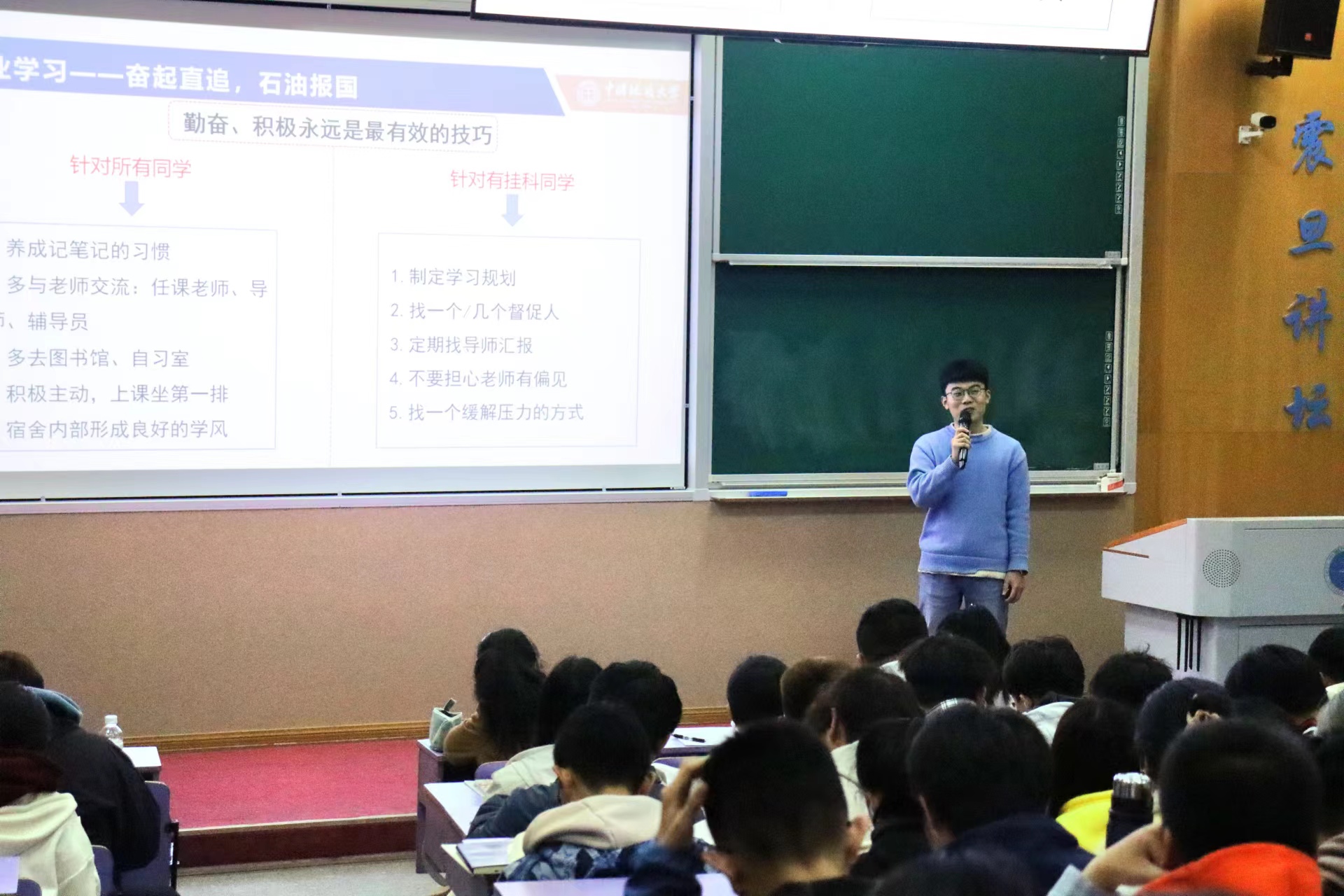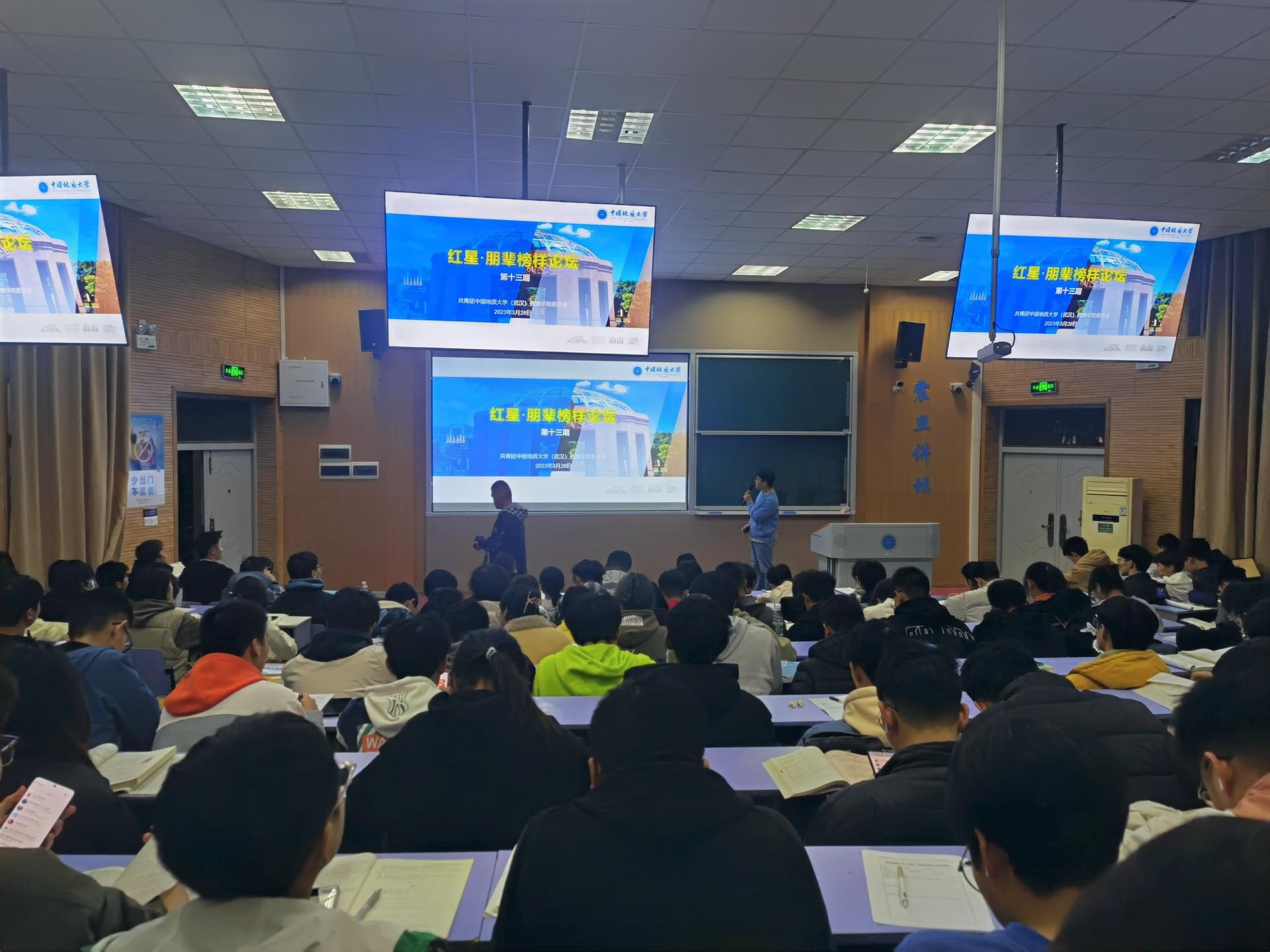 第十三期红星·朋辈榜样论坛在教三楼110举行。辅导员刘明辉,石油工程系2022级研究生聂思嘉,2022级全体本科生参加。刘明辉主持。