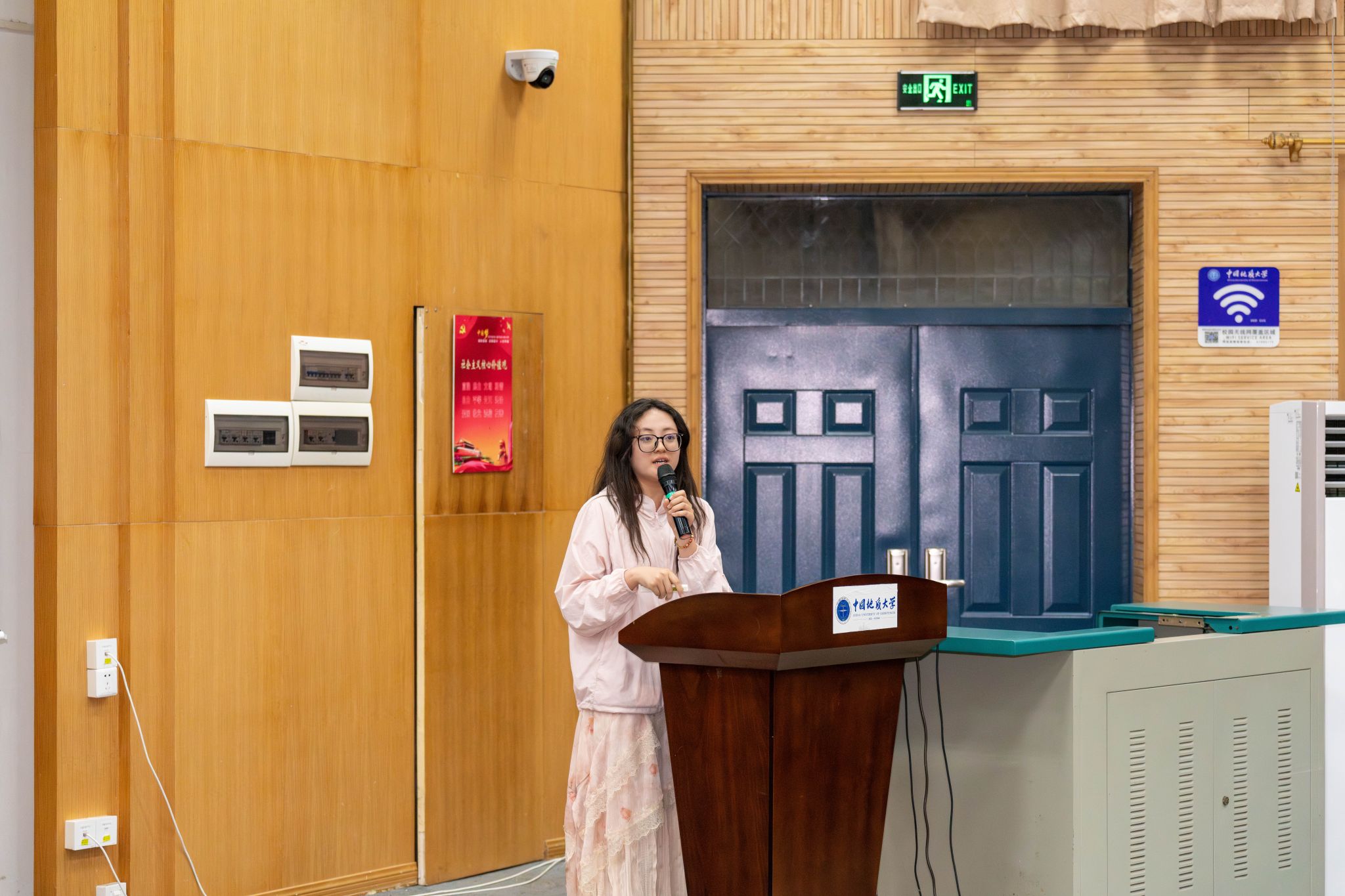 余慧同学分享《周口店、秭归地质实习》实习心得。她以“亦学亦游拓山海,寓教于乐观美景”为题总结实习收获,分享了露头观测、报告编写、实习考核等方面的经验,希望学弟学妹在游历山水中学以致用,在培育地质思维中知行合一。