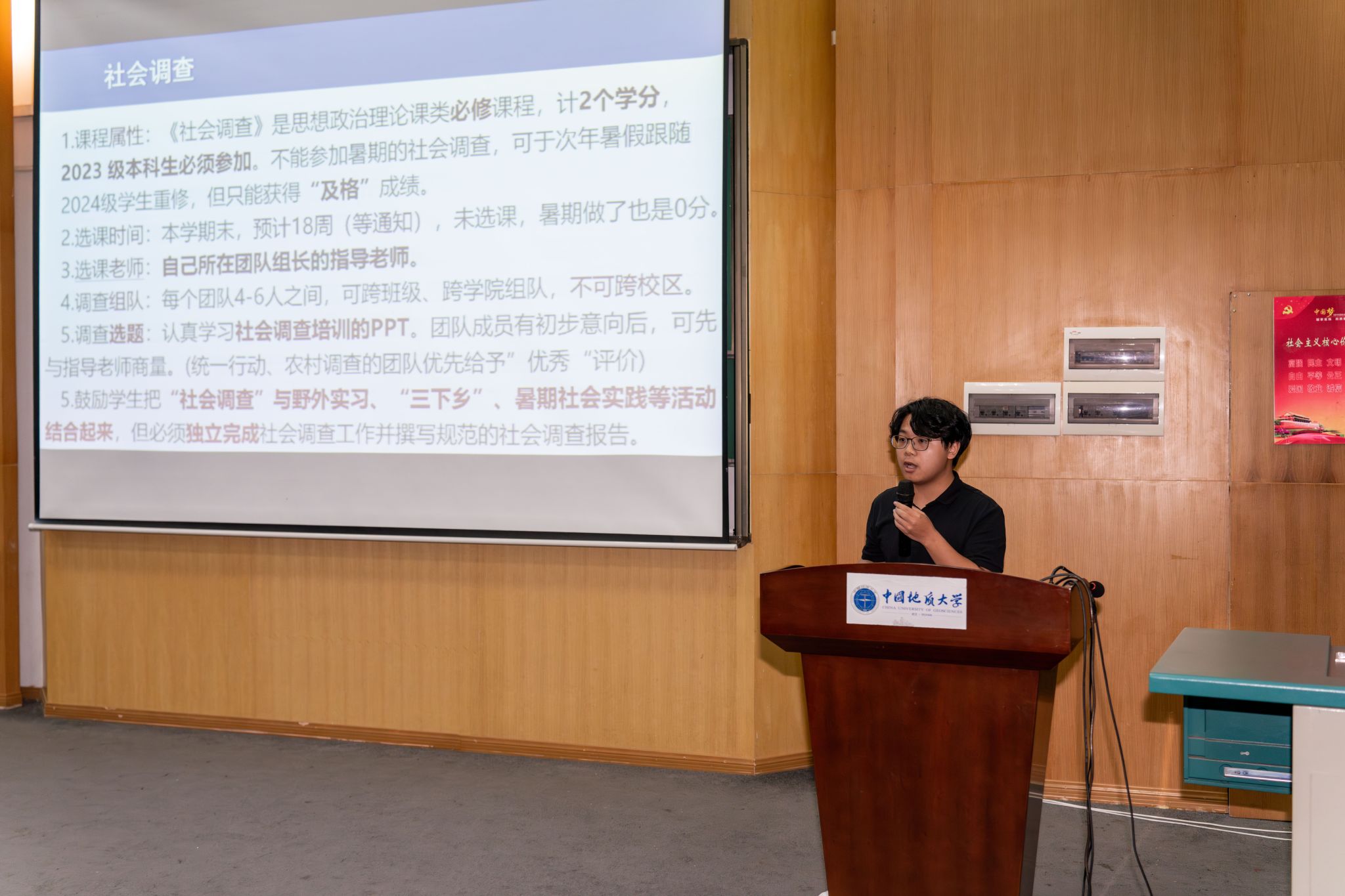 2023级年级工作组组长助理李玉冰以《如何做好社会调查》为题进行培训,帮助学生在暑期做好社会调查相应工作。