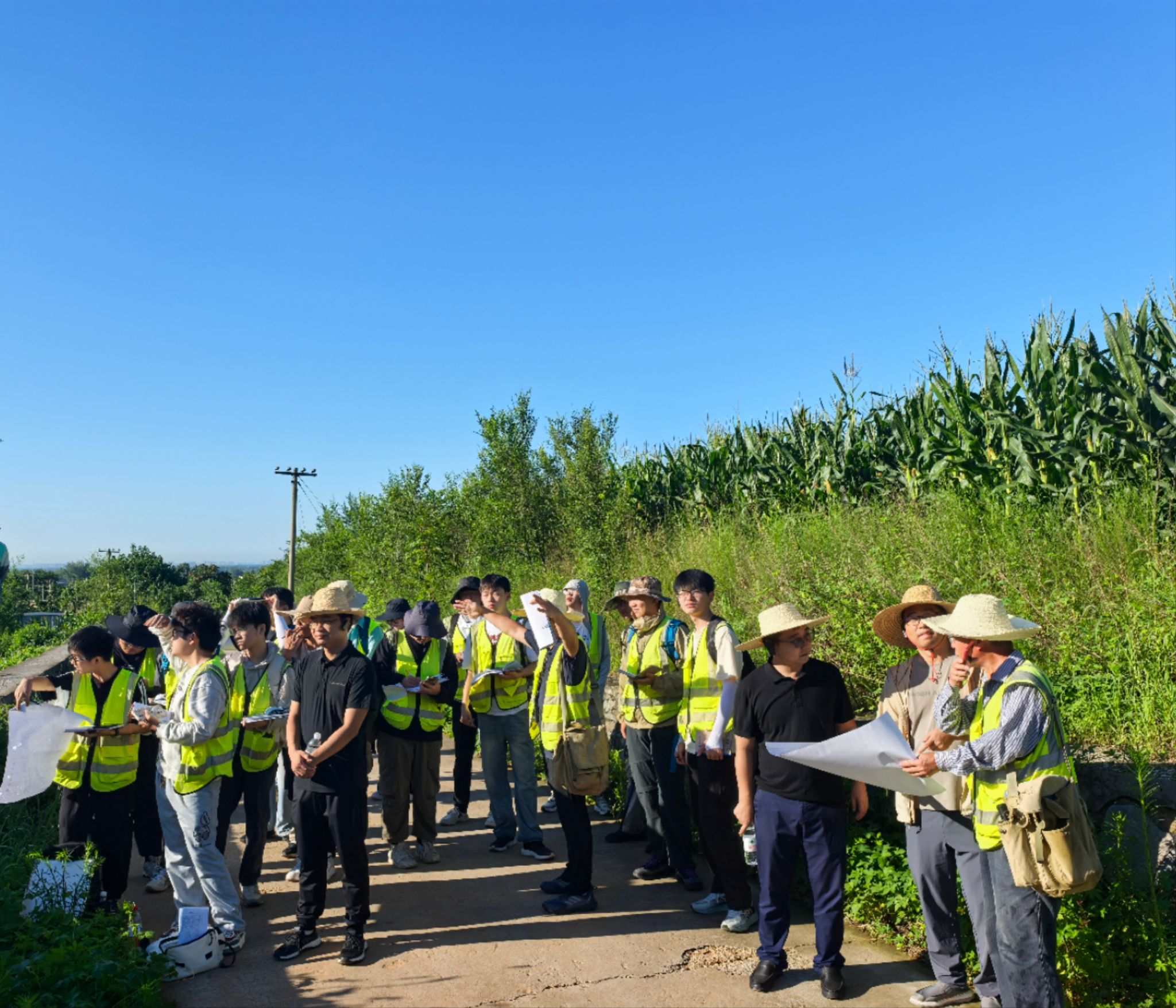 实习队队长魏启荣老师介绍了野外教学整体安排与进展。汪再奇一行旁听了荣辉老师的野外授课,详细了解资源勘查工程专业学生的路线学习情况。“周口店是我们地质工作者的摇篮,这里的每一块石头都记录着地质历史,也见证着一代代地质人的成长。”汪书记与踏勘的同学们重温了“山河为师、启智育德、力行悟道、地质报国”的“摇篮”精神。他希望同学们要倍加珍惜在“地质摇篮”中淬炼的宝贵时光,既能俯下身用脚步丈量大地,又能用罗盘和地质锤解读大地奥秘,在实地的探索中深化理论认知、拓展专业视野、磨砺攻坚克难的意志与本领。他寄语大家要胸怀“国之大者”,自觉将个人成长融入保障国家能源资源安全的使命担当中,让青春在为中国式现代化建设不懈奋斗的壮丽山河间绽放最耀眼的光彩!