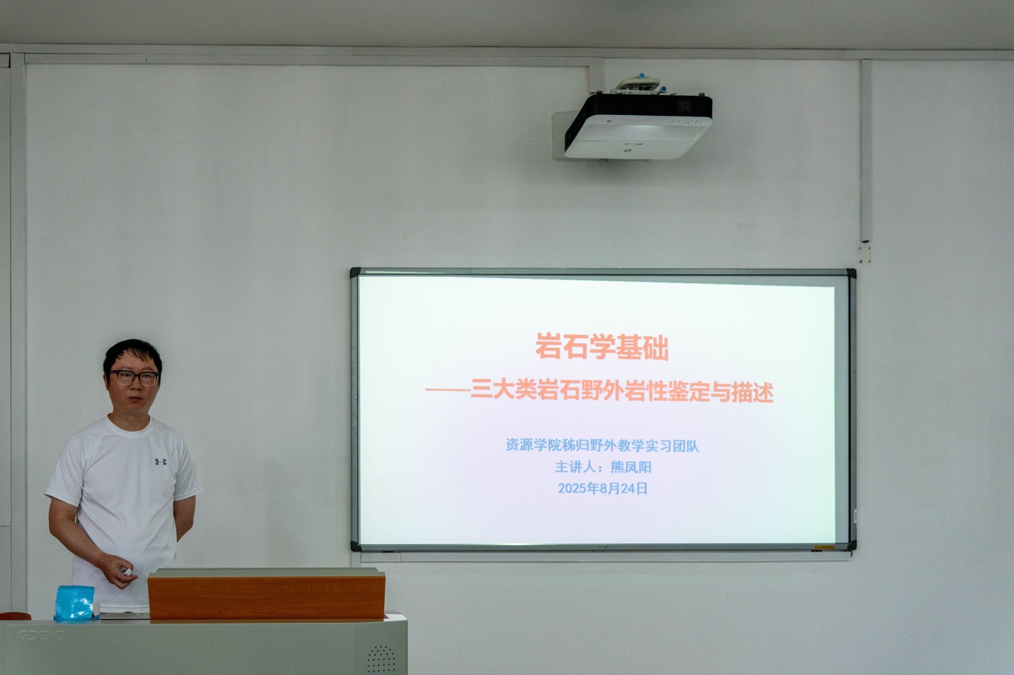 熊凤阳讲授“三大类岩石野外鉴定与描述”课程。