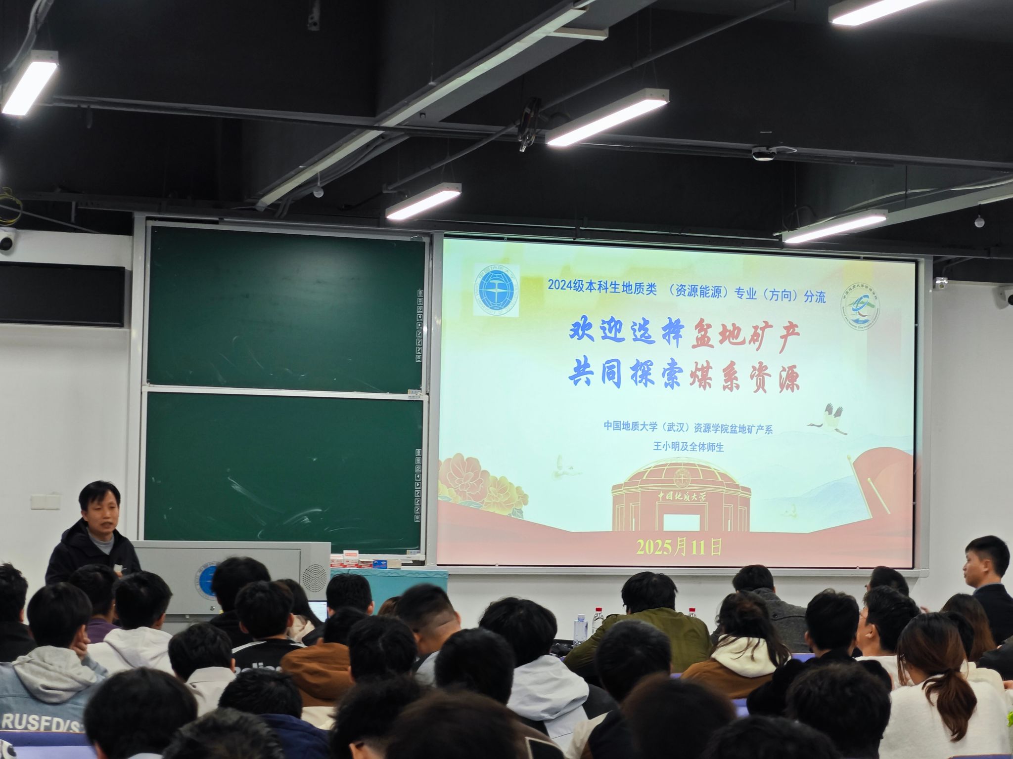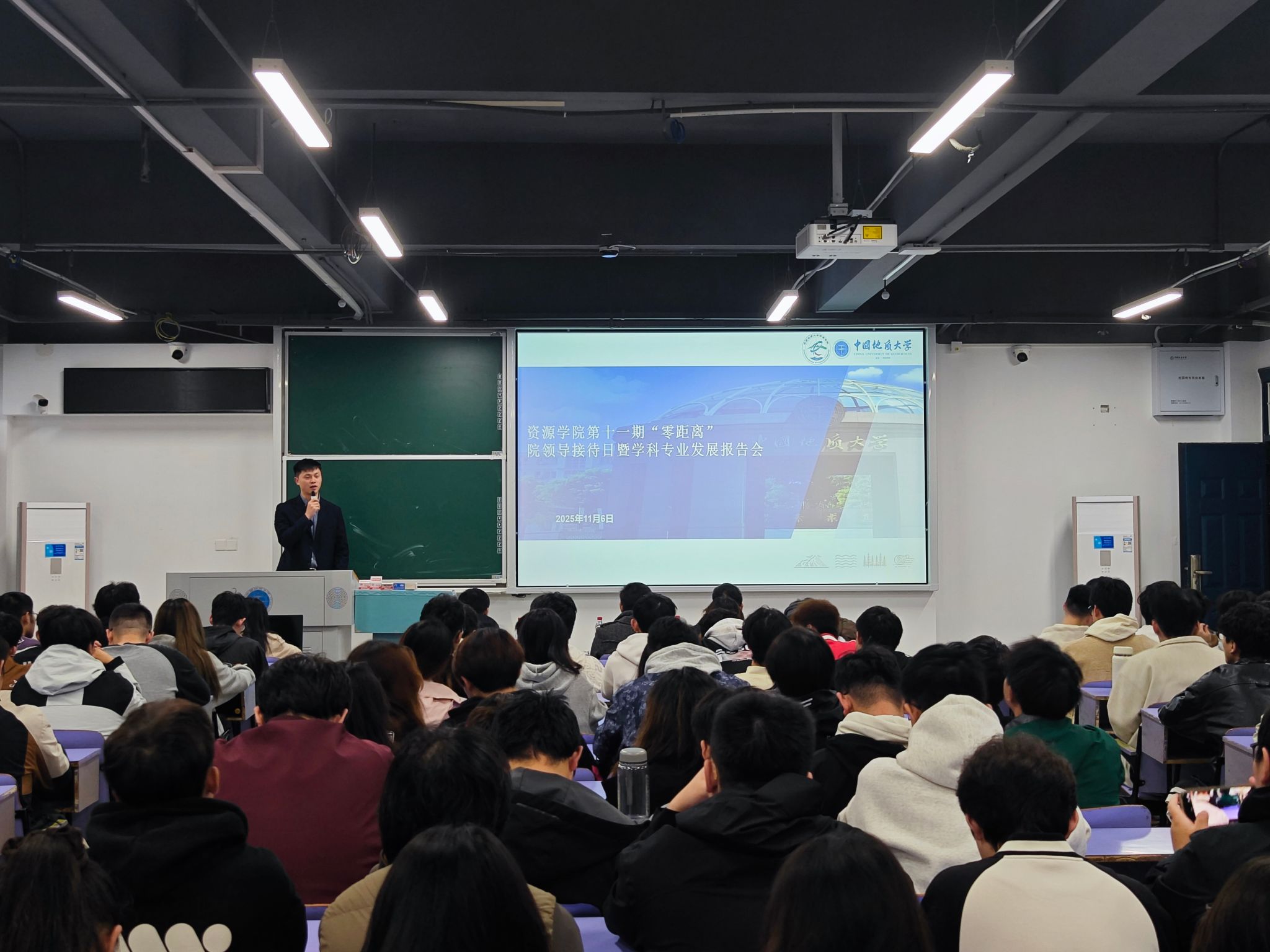 在教三楼306举行第十一期“零距离”院领导接待日暨学科专业建设发展报告会。学院党委副书记谭文伦、石油地质系主任叶加仁、盆地矿产系党支部书记王小明、资源系教师姚卓森,专兼职辅导员及2024级地质类(资源能源)学生参加。2024级辅导员刘睿主持会议。