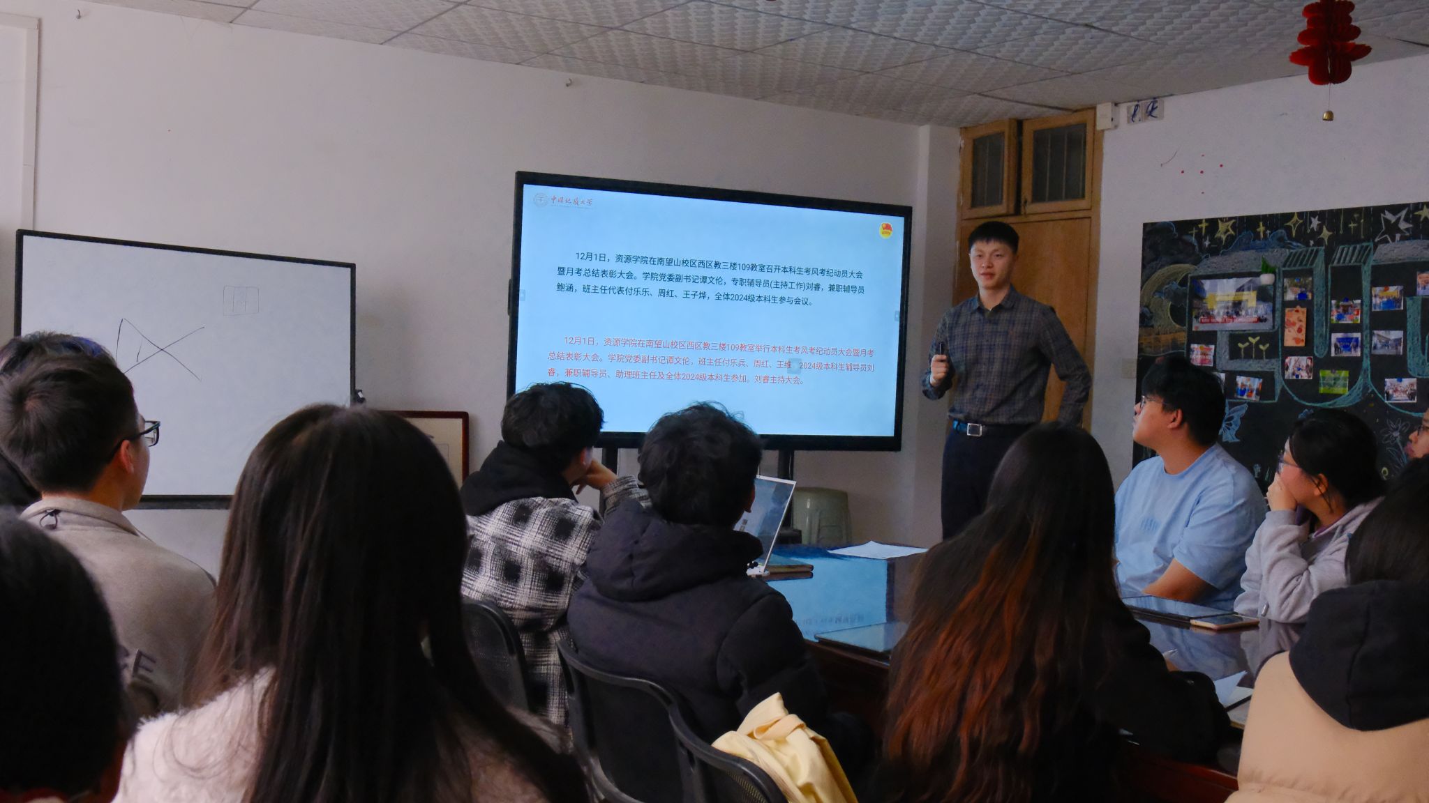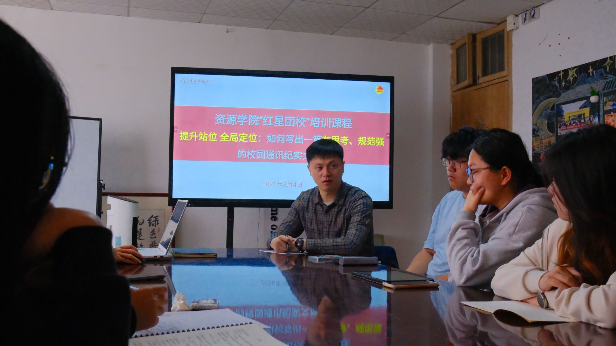 他结合工作实例,讲解了校园纪实通讯的写作注意事项。