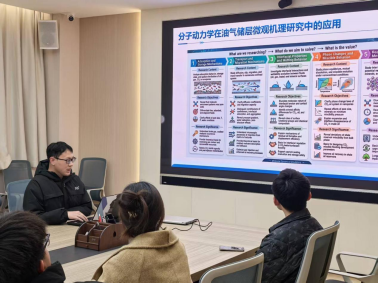 在主楼330会议室举行“第十五期红星·朋辈榜样论坛之研传·学术沙龙”。学院2024级石油与天然气工程专业博士研究生、国家奖学金获得者、“挑战杯揭榜挂帅赛道”全国三等奖获得者谢忱悦作为嘉宾以“分子动力学在油气储层微观机理研究中的应用—以CO₂-页岩油混相行为为例”为题进行分享,学院博士生、硕士生及部分本科生参加。辅导员林心悦主持活动。