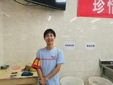 张行凯、章浩等10名同学主动报名参加“劳动实践课程”,分别在后厨帮工、卫生监督员、光盘监督员等岗位上体验沉浸式劳动教育。