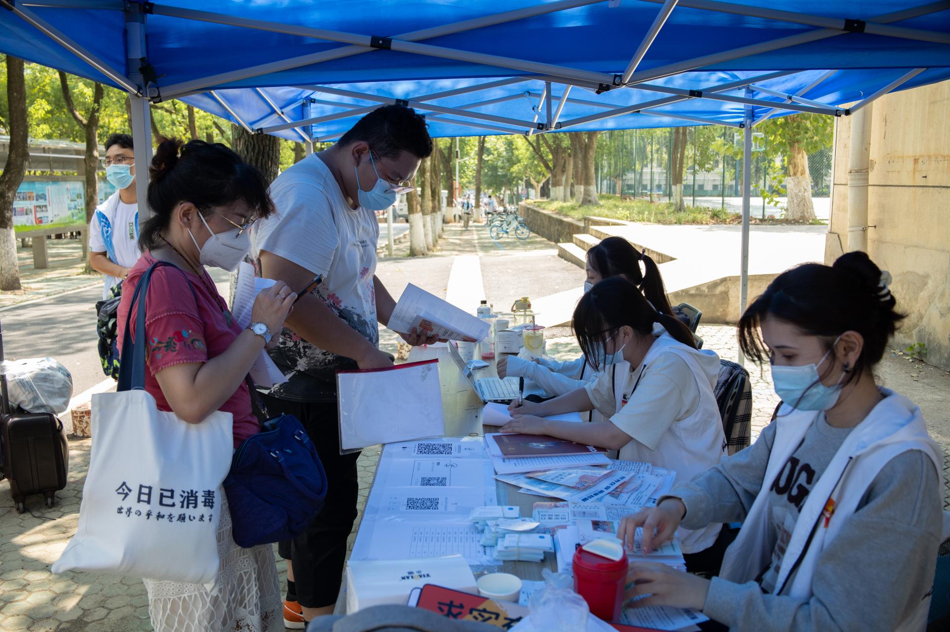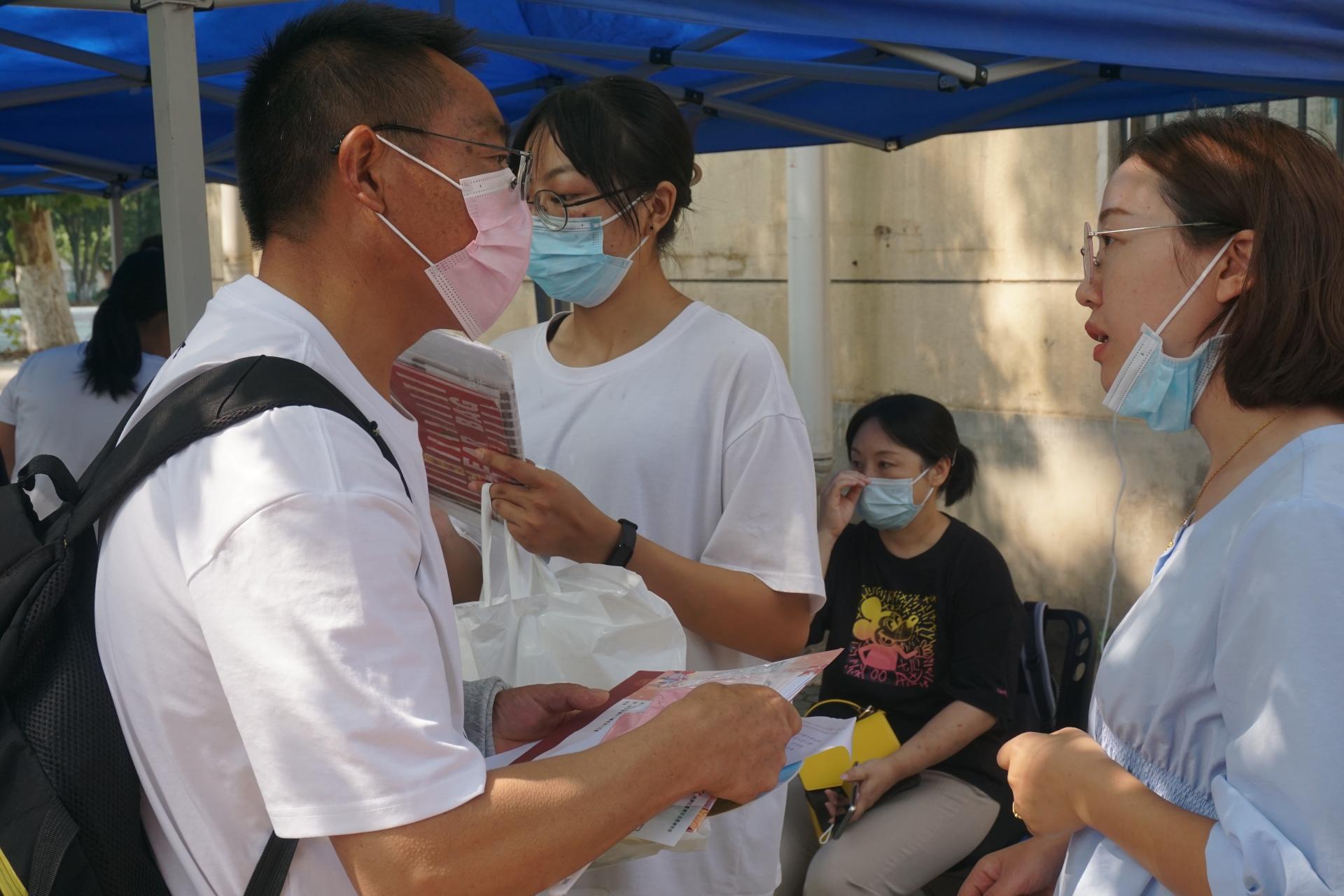 值班老师们为新生、家长排忧解惑,