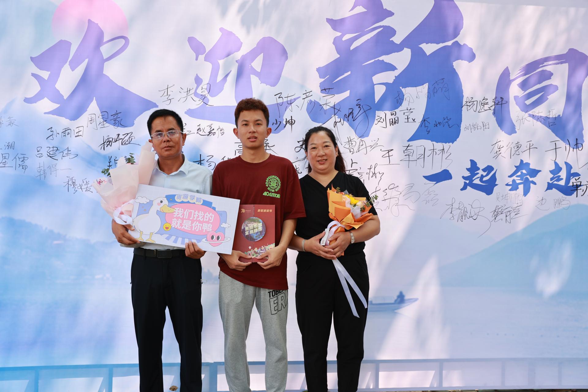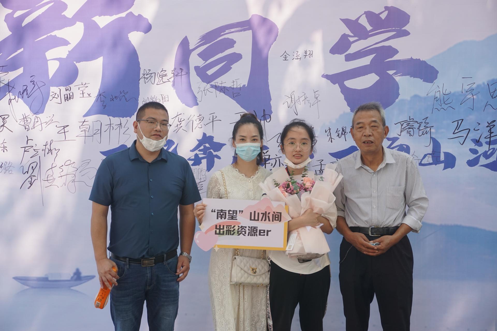 学号为0001号的幸运儿陈彦荣与父母合影