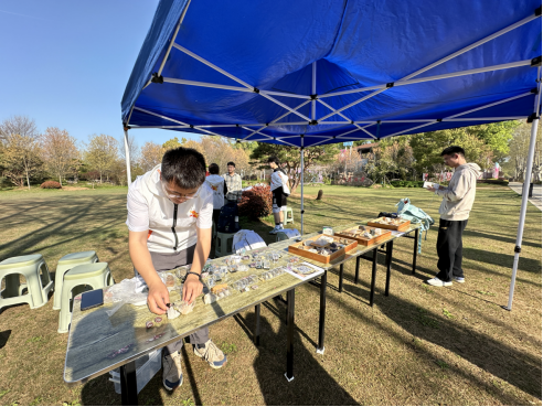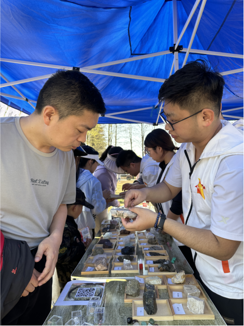 学生会科普实践部、红星青年志愿者协会、“扬子鳄”科普实践队联合在磨山风景区开展矿石科普。