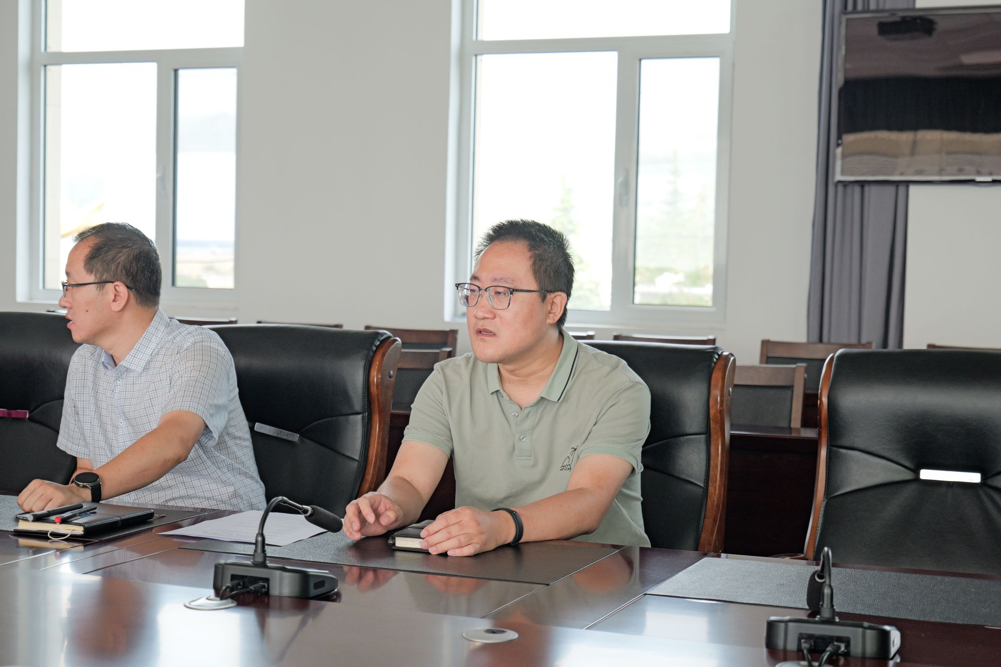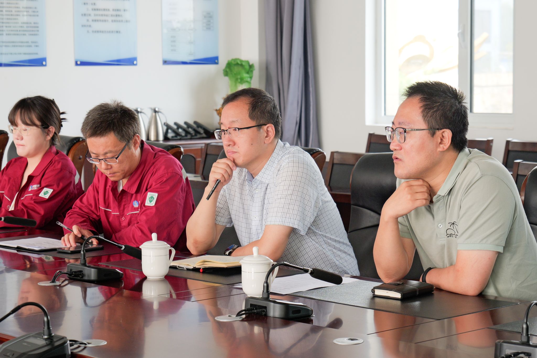 参观结束后,实践团与单位党群工作部部长杨扬、生产技术部副主办康勇、生产技术部科员孟思雅进行座谈交流。实践团介绍了来访目的和校院的基本情况,并针对未来就业选择和职业生涯规划等内容进行提问。单位与会代表进行耐心的答疑解惑。