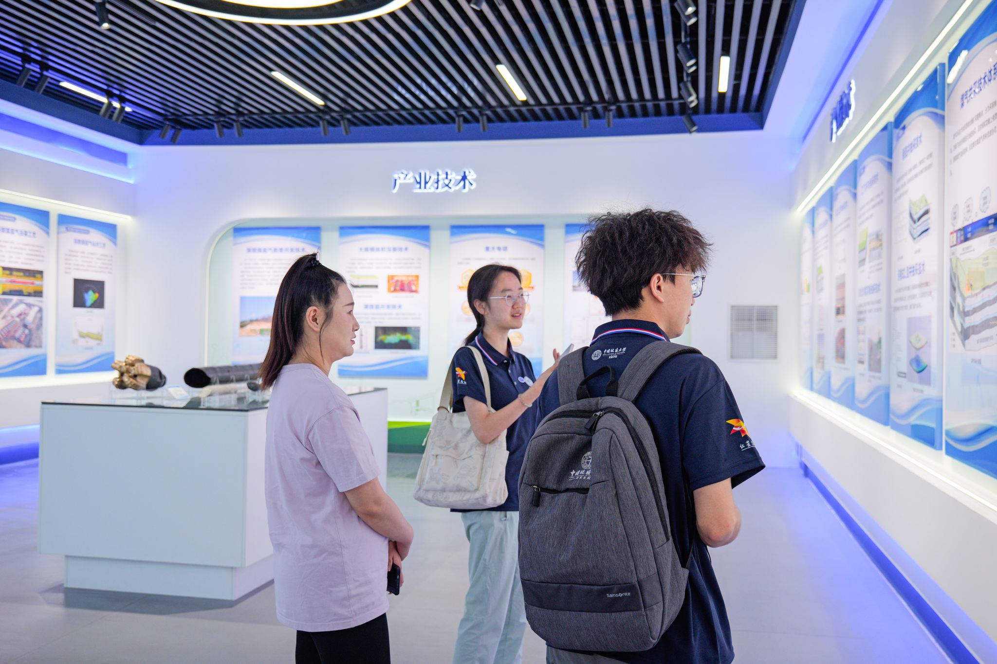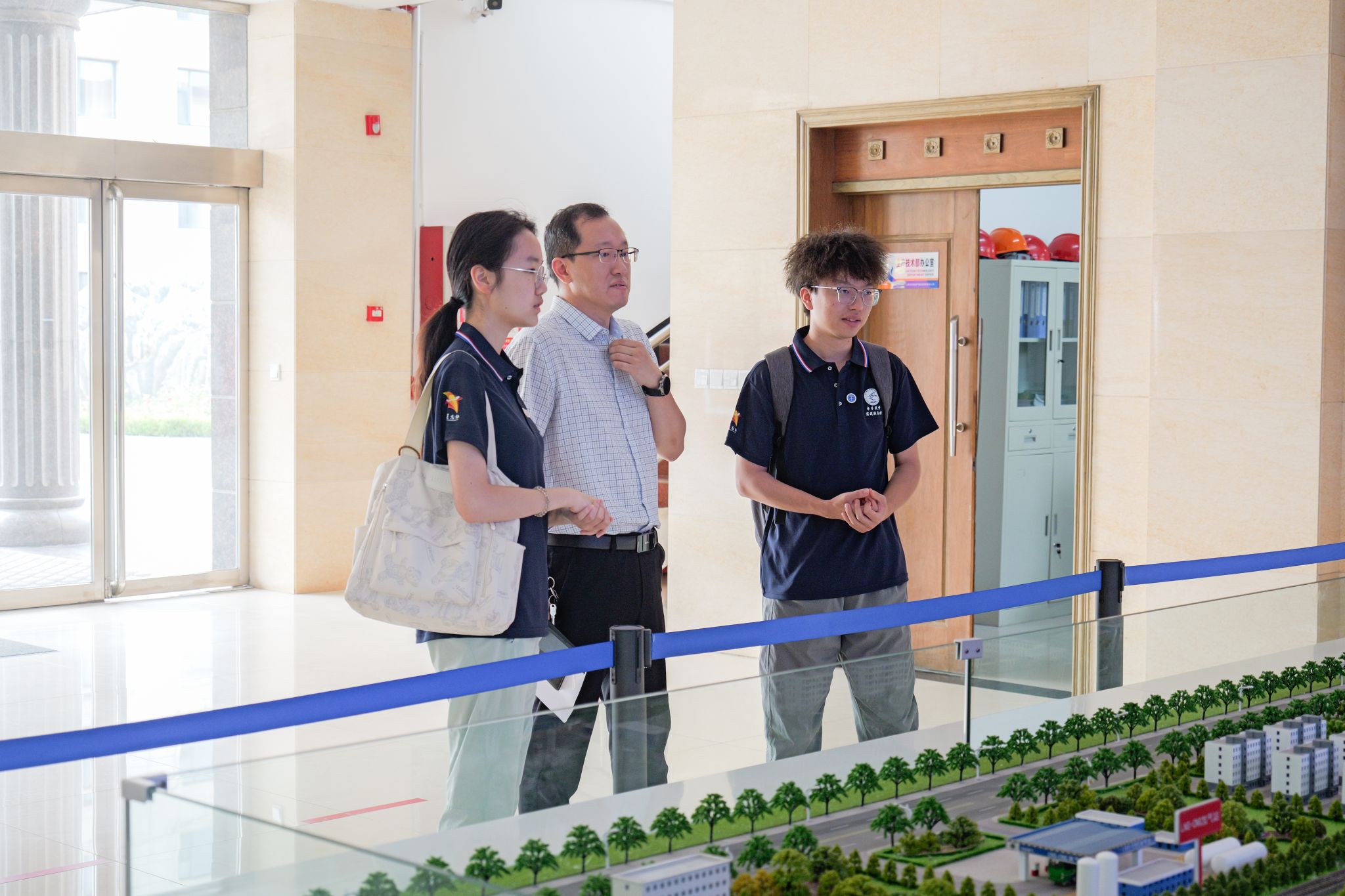 实践团在单位相关负责人带领下先后参观了煤层气科技创新展览馆和蓝焰煤层气公司全产业链发展实景沙盘,详细了解了企业发展历程、产业现状、技术创新成果和未来发展规划等情况。