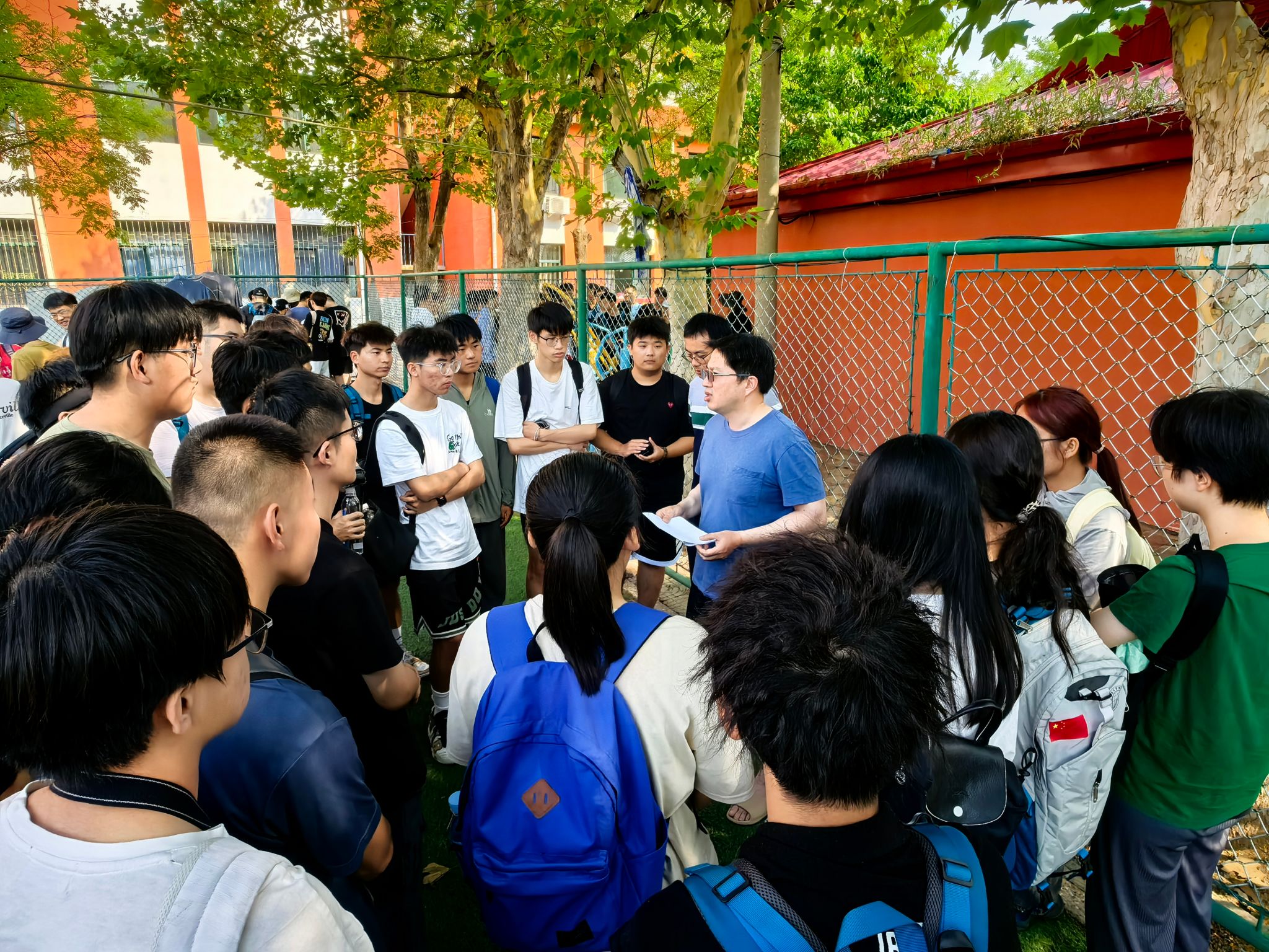 集中教学结束后,由带队老师带领各班级到操场进行分班教学,在老师们的指导下,同学们进行罗盘使用实操训练,调校磁偏角、测产状、测方位……同学们认真聆听、不断尝试,并进行实际操作演示。