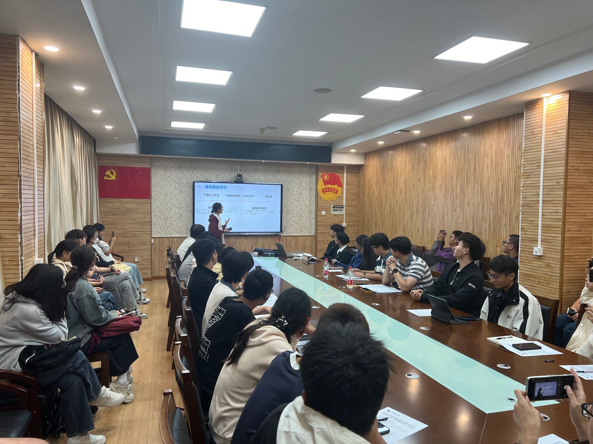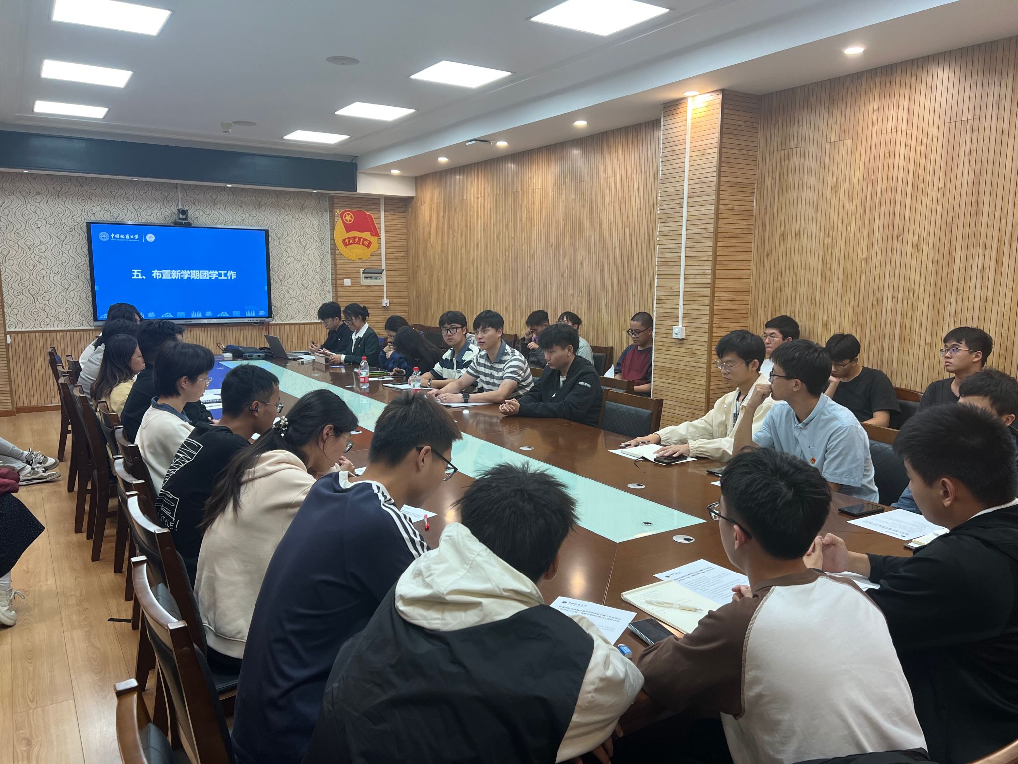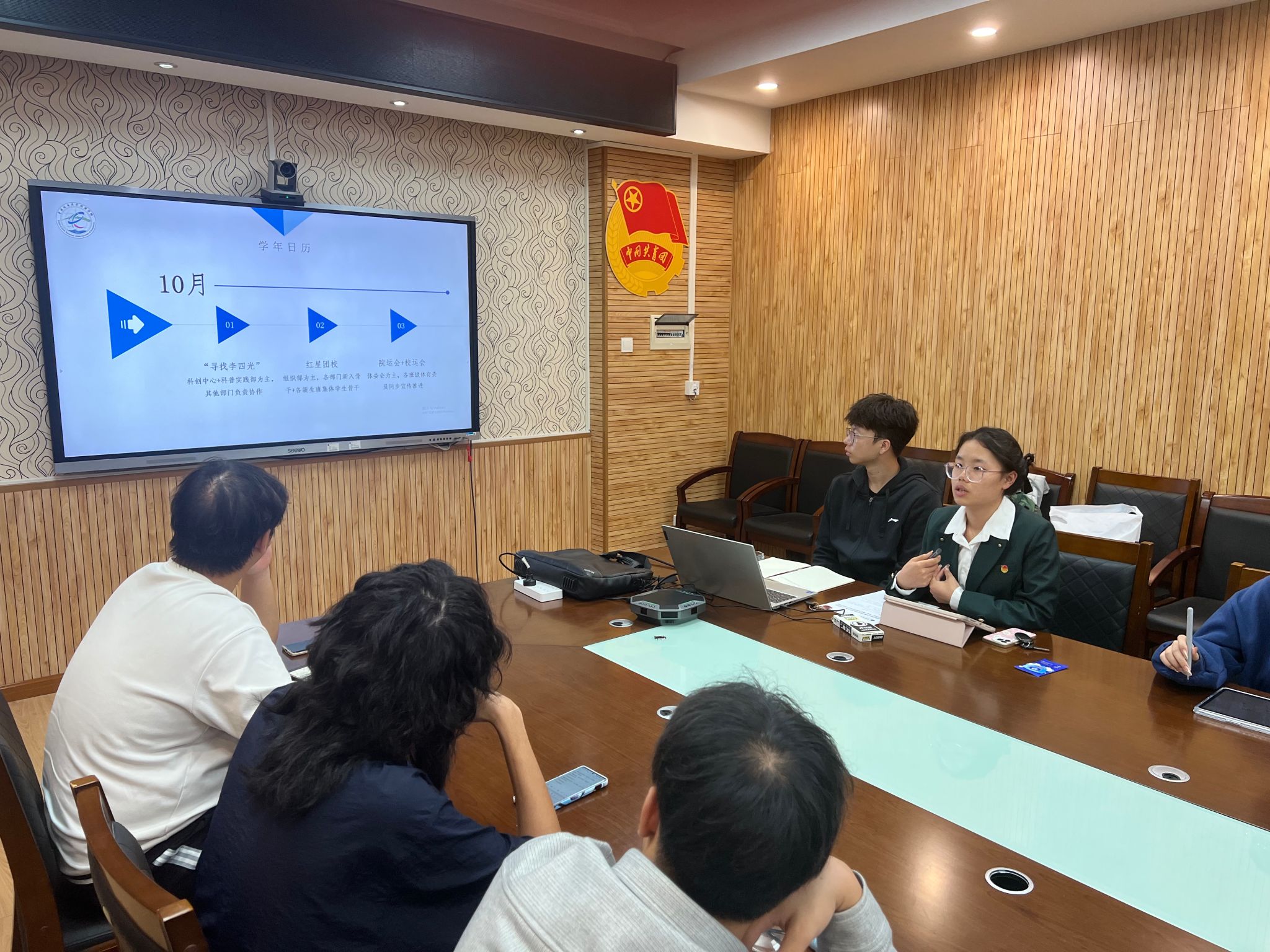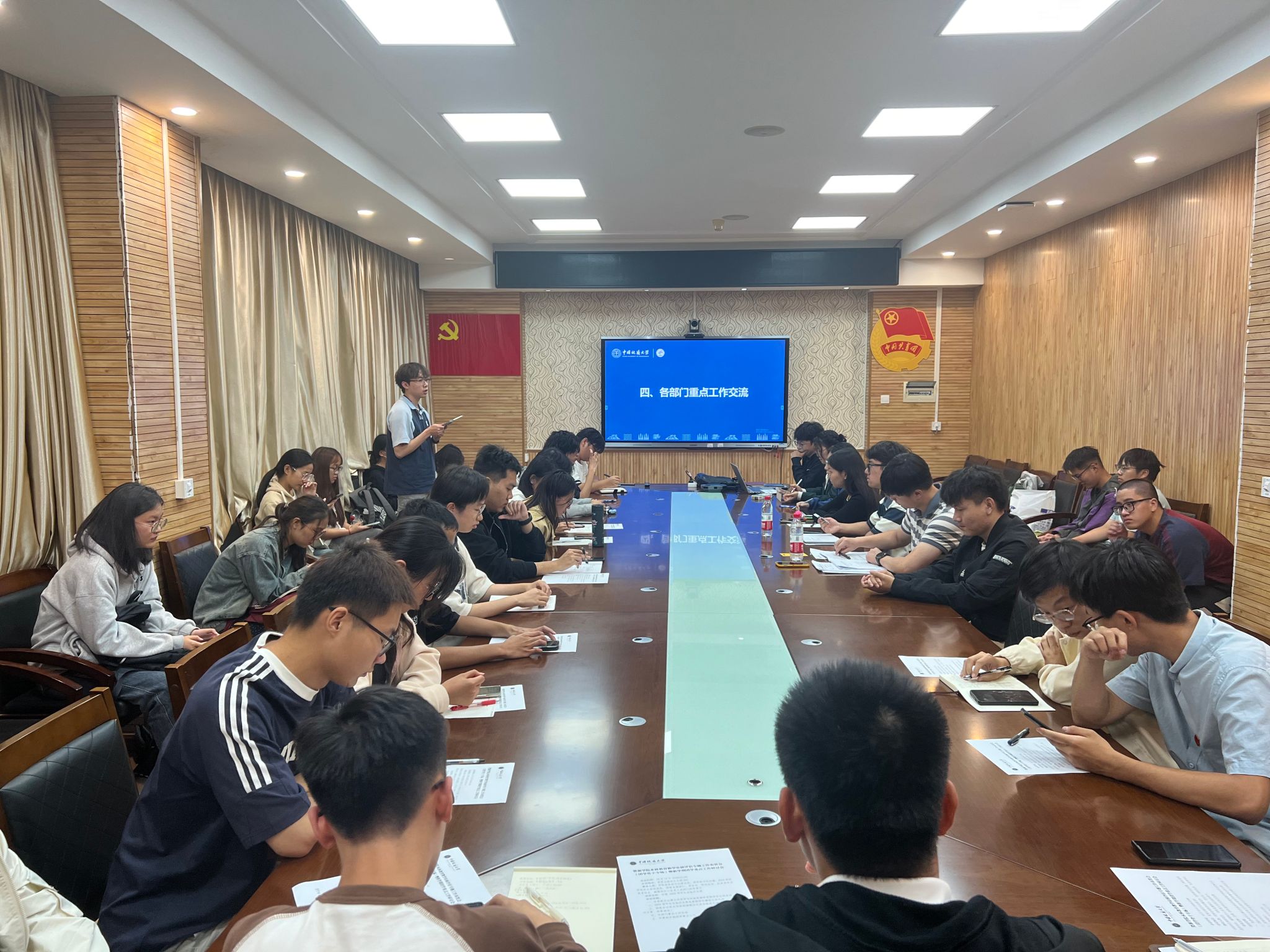 2024-2025学年团学工作介绍》,团委办公室孙钰涵讲解《公文基本写作规范》,各部门负责人就近期重点工作开展交流。