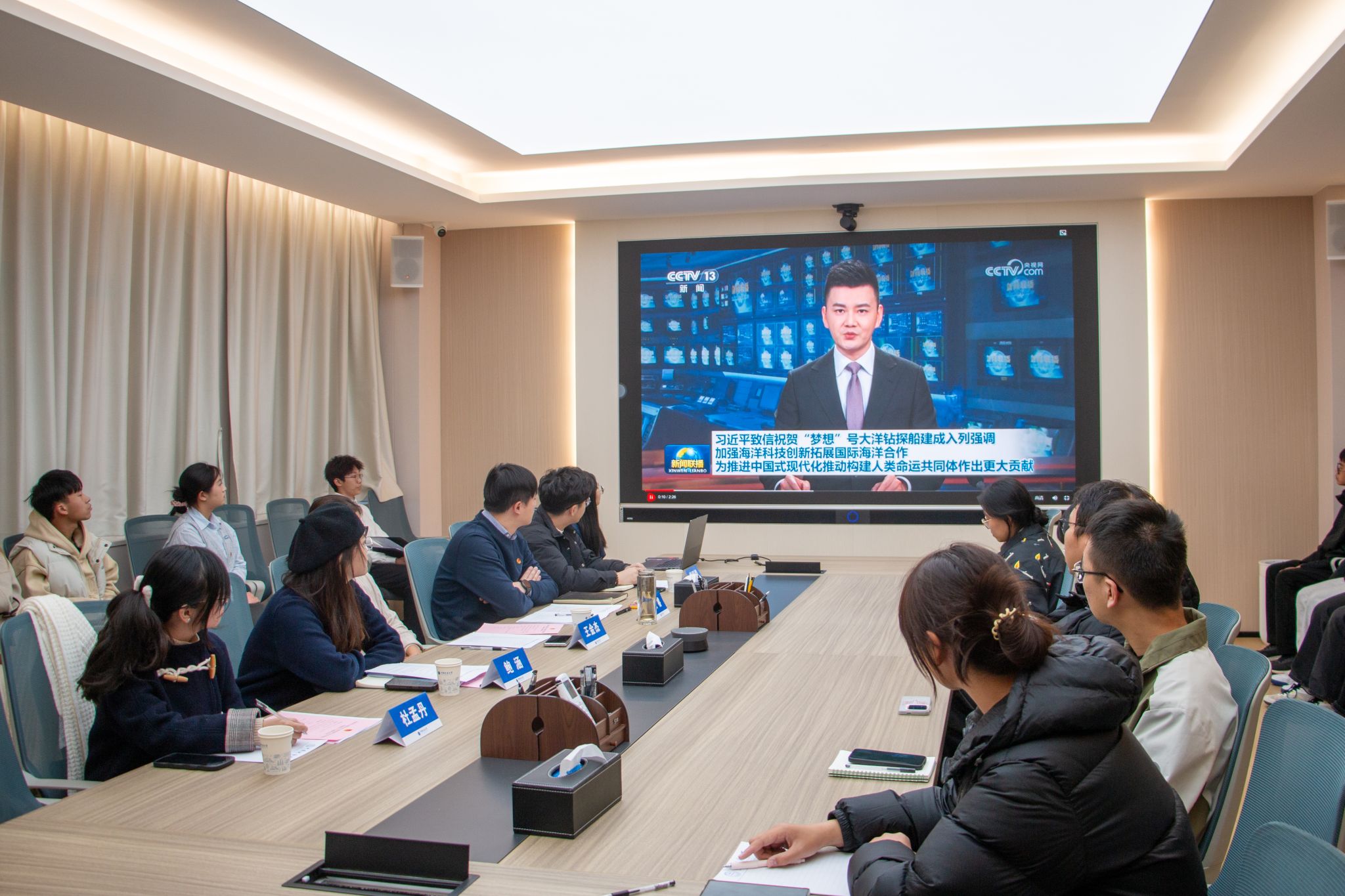 与会师生共同学习习近平总书记致“梦想”号大洋钻探船建成入列的重要贺信精神。