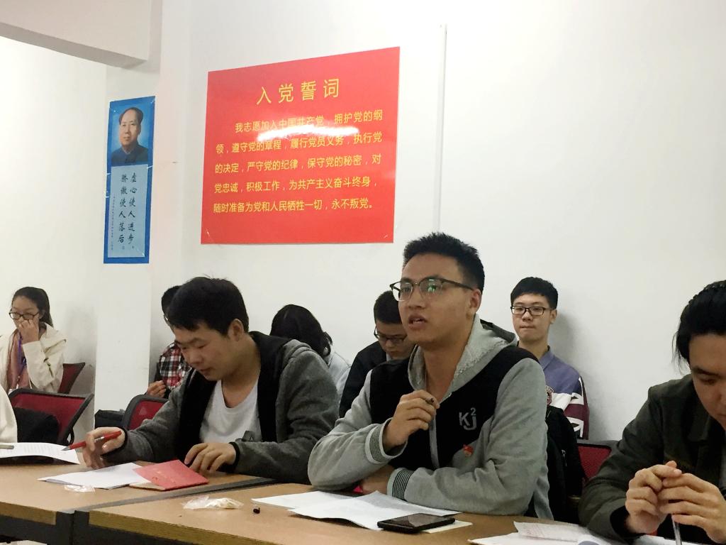 随后,与会党员就本次主题党日的学习内容展开了讨论。郑小波同志就政治纪律问题,结合最近的“洁洁良”事件,强调在发展党员时,一定要全面考核、严格要求,身为党员的我们也更应时刻严格要求自己的言行,做一名合格的共产党员。杨瑞同志提出了如何将个人发展和学校建设相结合的疑问,引发了与会本、研党员的热烈讨论,研究生党员们纷纷结合自身的经历分享了相关经验。