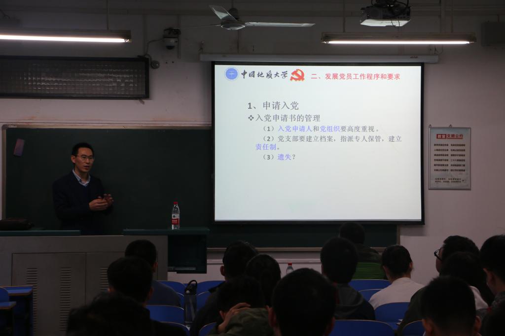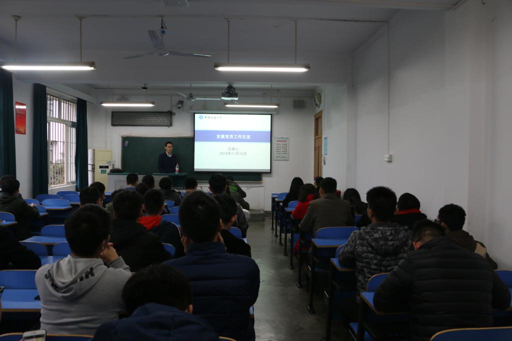 2018年“学习之路”党员骨干培训班第四讲于教一202顺利举行。学校党委组织部冷再心老师为党员骨干们作了题为“发展党员工作交流”的专题培训。此次培训共有64位党员骨干到场学习。